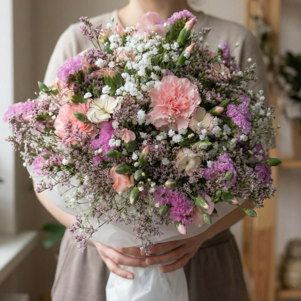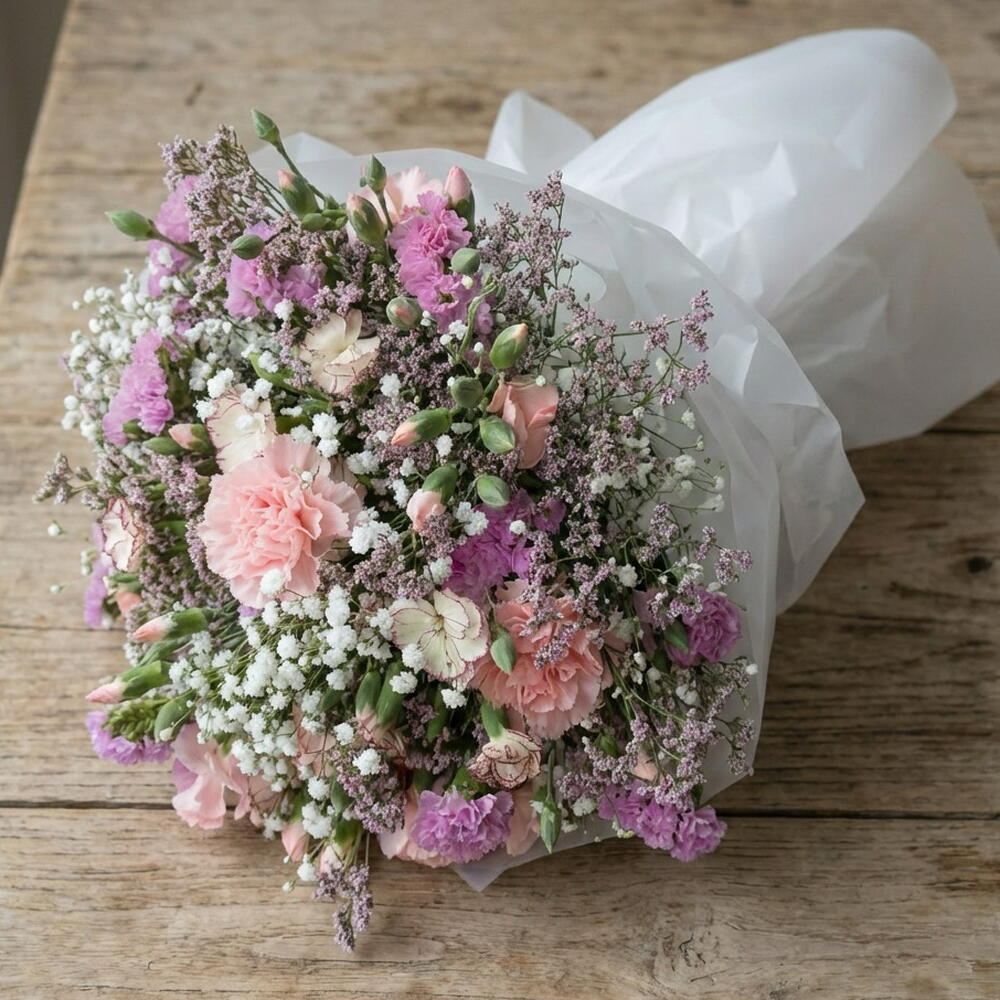 Statice - 2 ud. Limonium - 4 ud. paniculata - 3 ud. clavel - 11 ud.