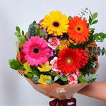 Lleva alegría a cualquier ocasión con este vibrante ramo multicolor. Una explosión de color y frescura con gerberas, claveles y alstroemerias que iluminarán el día de quien lo reciba. Ideal para cumpleaños, celebraciones o simplemente para regalar una sonrisa.