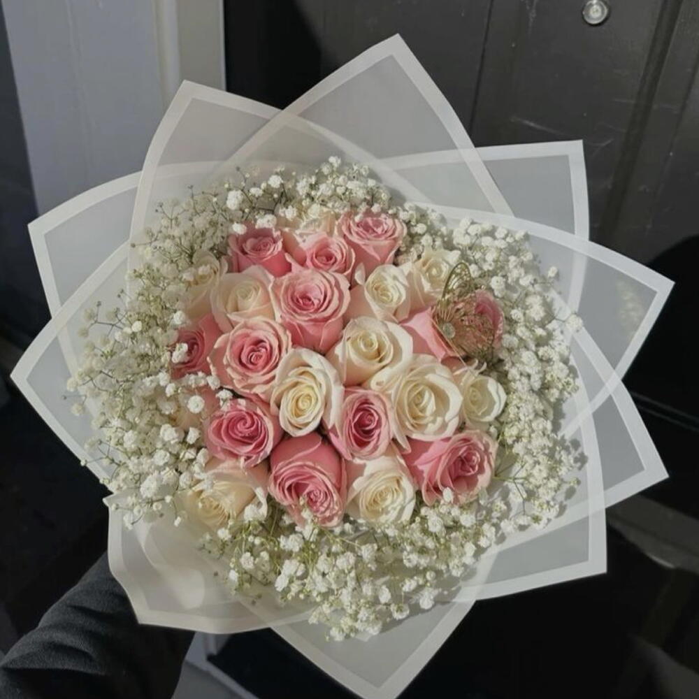 rosas blancas - 23 ud. paniculata blanca - 1 ud. rosas rosas pastel - 23 ud.