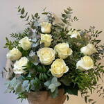 Ramo de 12 Rosas Blancas con Verdes Variados
