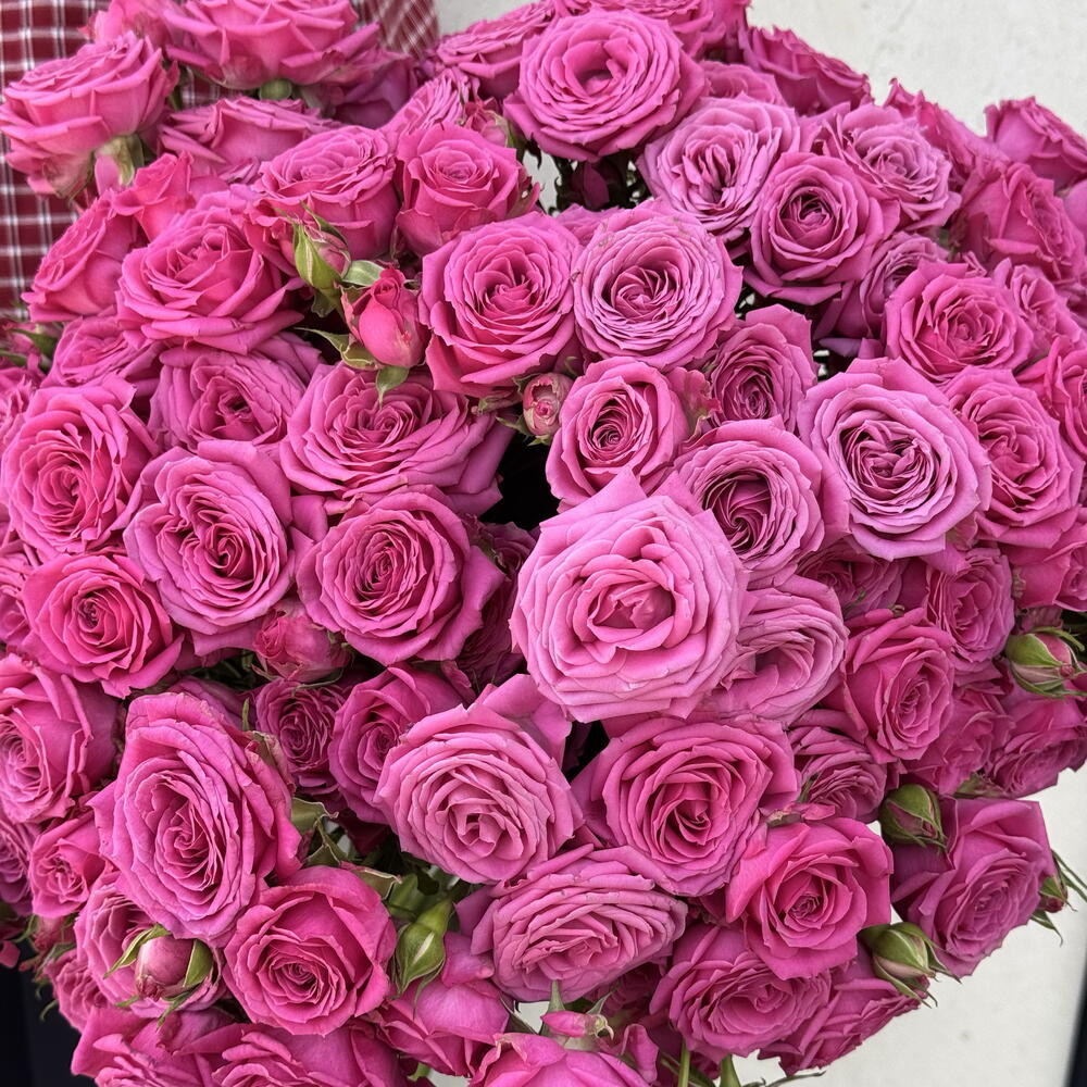 Clásico bouquet de rosas fucsia magenta que destaca por su intensidad y frescura. Los botones firmes y el color vibrante expresan amor y energía. Una opción ideal para un regalo elegante y lleno de emoción.