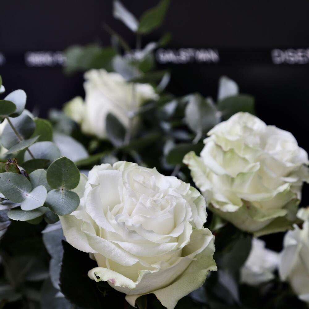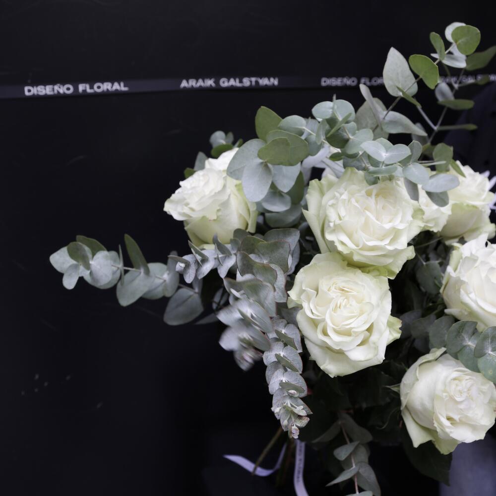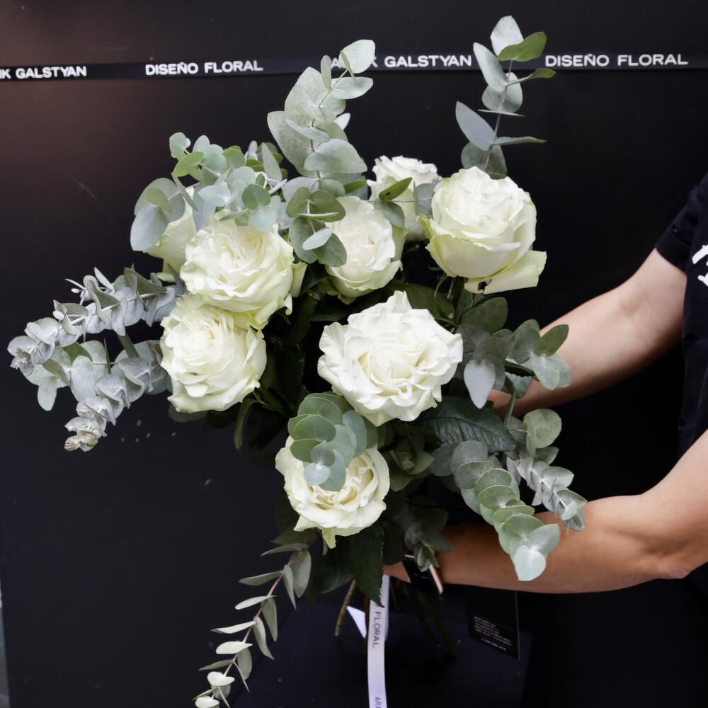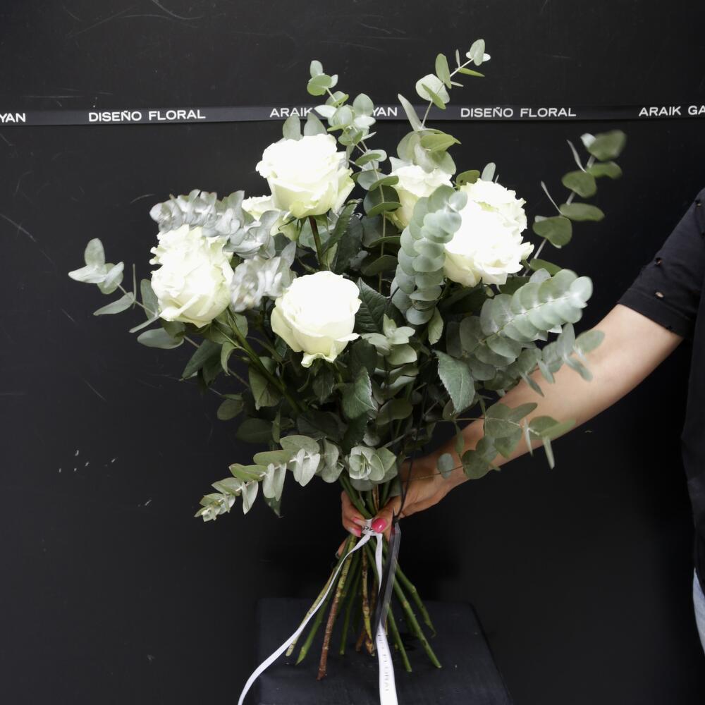 Ramo de 9 Rosas Blanco y Eucalipto ARAIK GALSTYAN