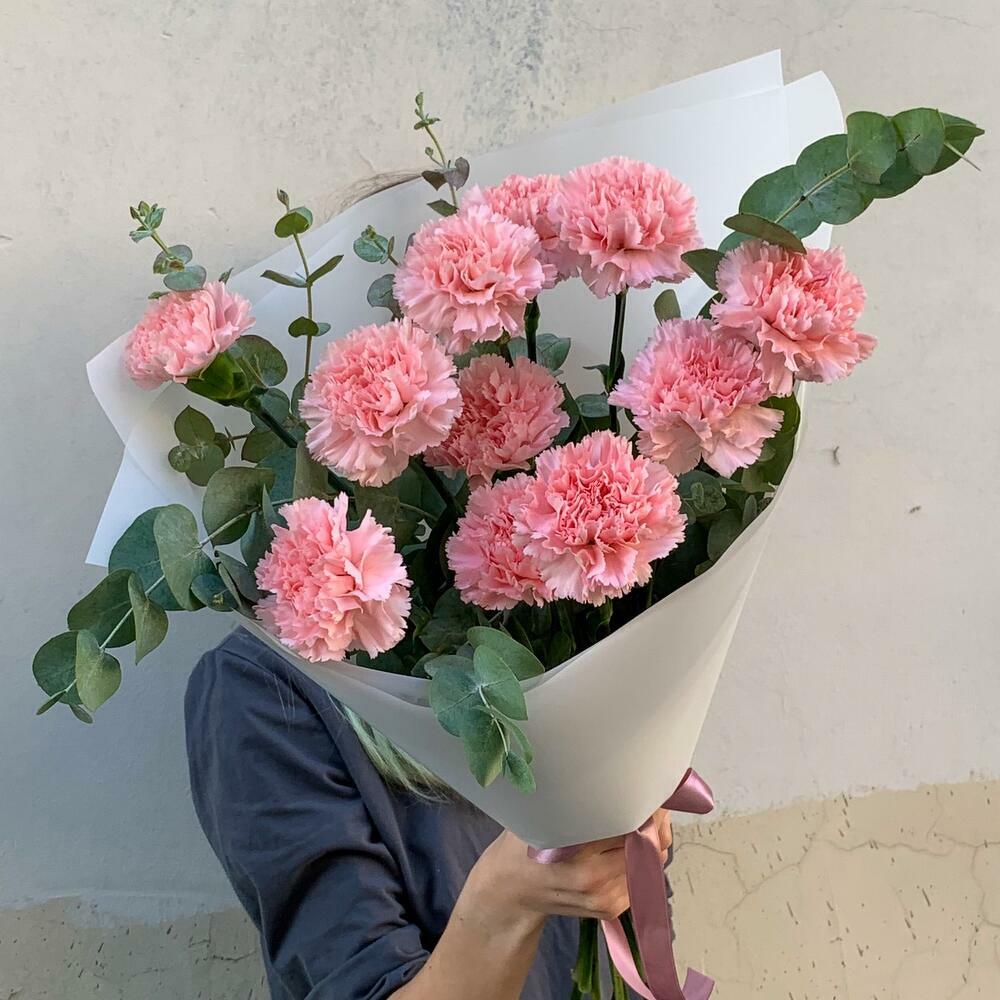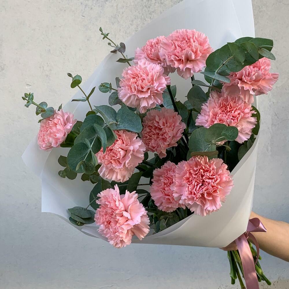 Un encantador ramo compuesto por 11 claveles rosados y 5 ramas de eucalipto fresco: la expresión perfecta de ternura y ligereza. Envuelto en un elegante papel blanco de diseño, es un regalo ideal para un momento romántico, un sincero “gracias” o un cumplido lleno de calidez.