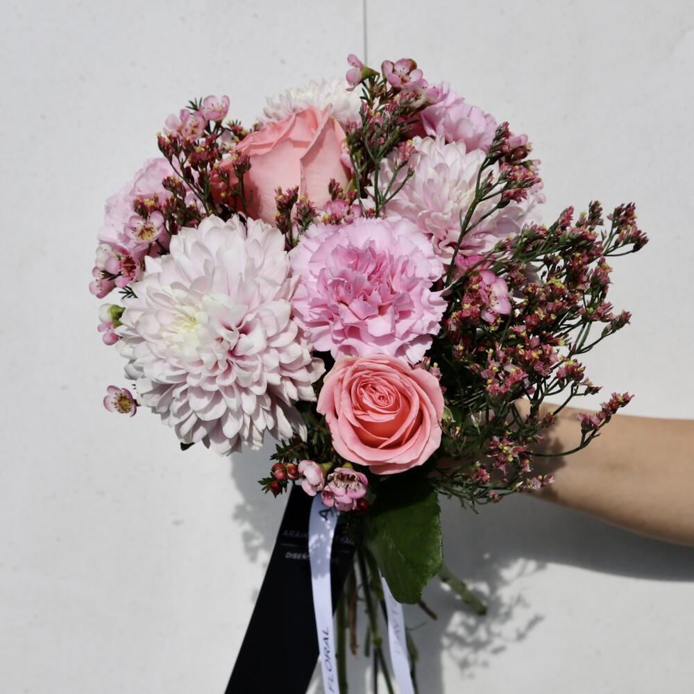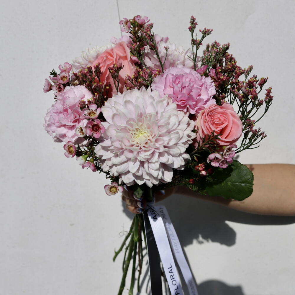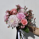 Ramo de crisantemo, rosas, clavel y chamelaucium Un bouquet que combina la elegancia clásica de las rosas, la frescura vibrante de los crisantemos, la suavidad atemporal de los claveles y el delicado encanto del chamelaucium. Esta mezcla de flores crea una composición llena de armonía, color y sofisticación, perfecta para transmitir amor, gratitud o alegría en cualquier ocasión. Cada tallo ha sido seleccionado cuidadosamente para reflejar belleza y equilibrio natural. Please note: depending on seasonality and availability of certain flowers, the bouquet’s composition and color palette may slightly differ from the image. However, the overall style, proportions, and mood of the arrangement are always preserved. 🚚 Weekend delivery outside the city limits is subject to special conditions.