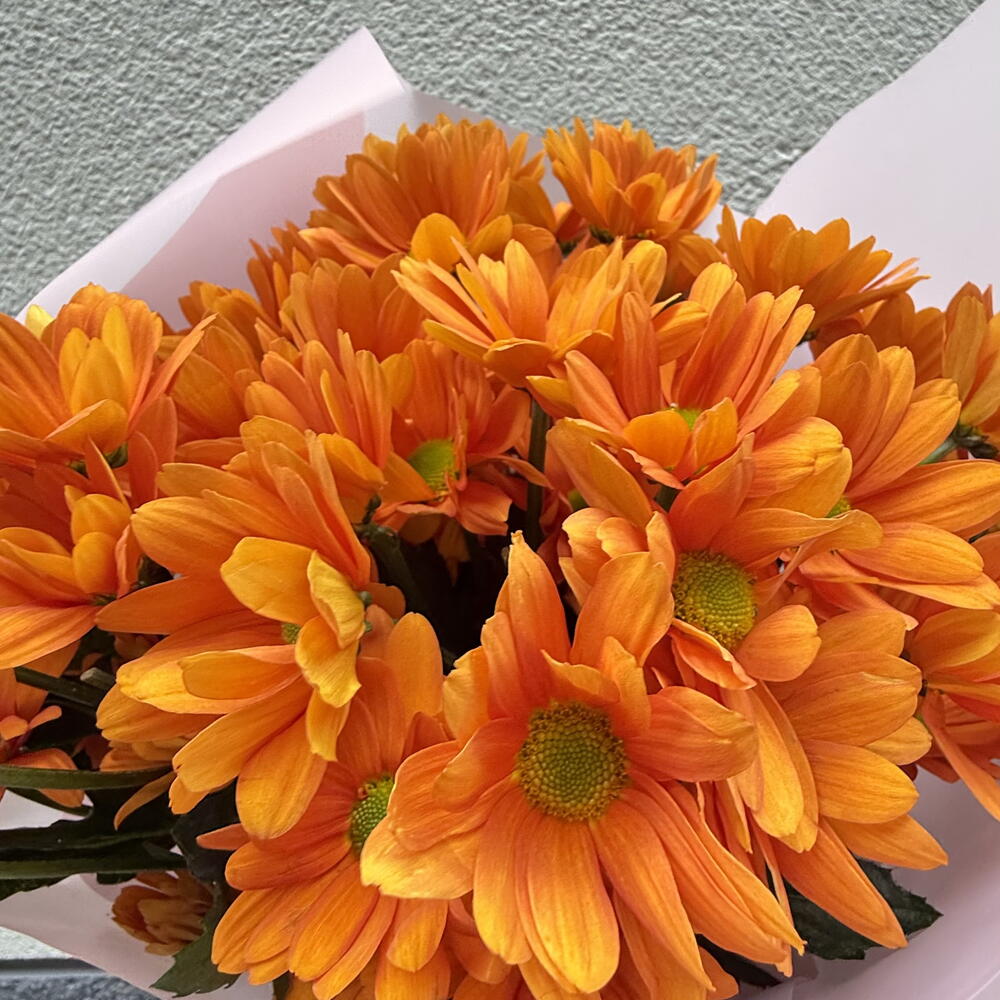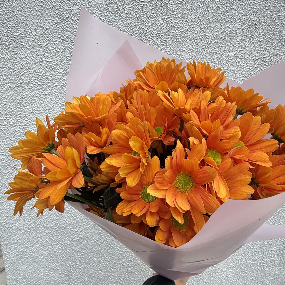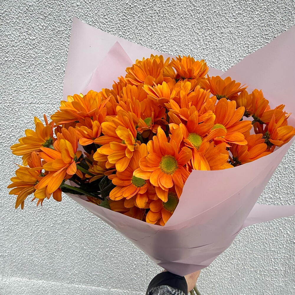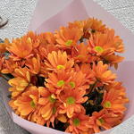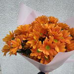 Una combinación de esplendor y luminosidad en un monoramo de 10 crisantemos ramificados de color naranja. Esta obra de arte floral será un regalo deslumbrante para cualquier ocasión, decorando el espacio con su brillo lujoso y brindando calidez y alegría a quien lo reciba