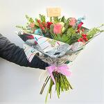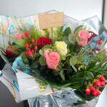 Este colorido ramo de cumpleaños es pura alegría y frescura. Combina rosas en tonos rojo, rosa y crema, junto con frutos decorativos rojos y toques de flores azules, creando una composición llena de vida. Envuelto en un papel festivo con corazones y lazo rosa, transmite cariño y celebración en cada detalle. Para que se conserve hermoso, colócalo en un jarrón con agua fresca, evita el sol directo y renueva el agua cada dos días para mantener la vitalidad de las flores.