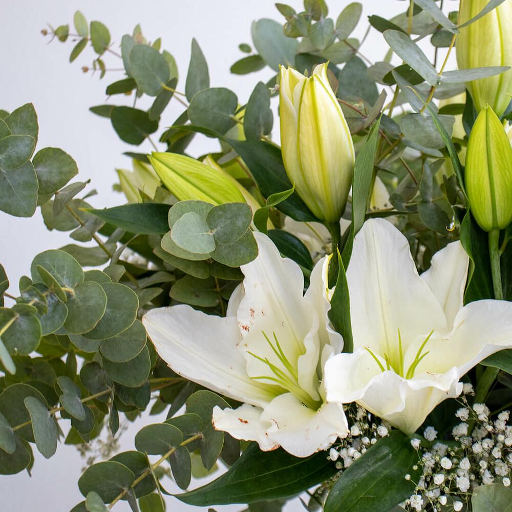 eucalipto - 5 ud. paniculata - 3 ud. lilium oriental blanco - 5 ud.