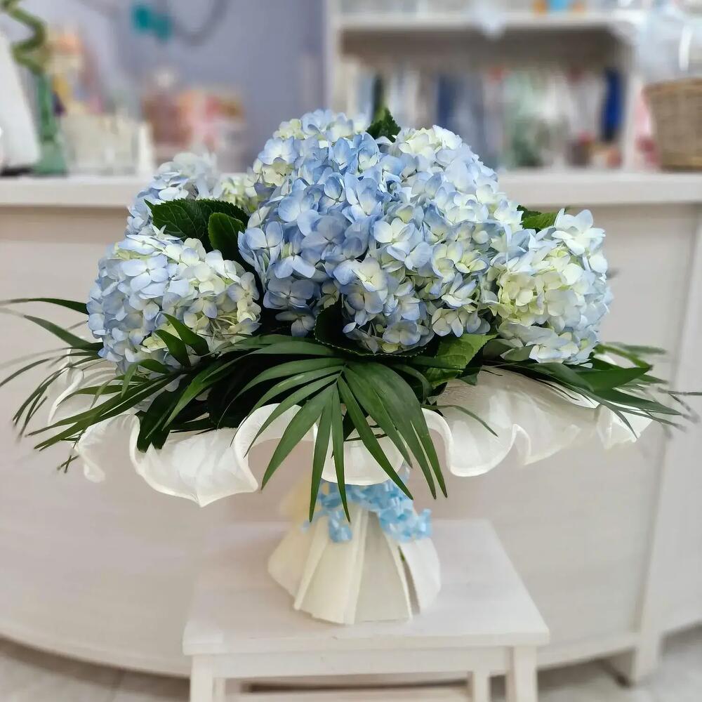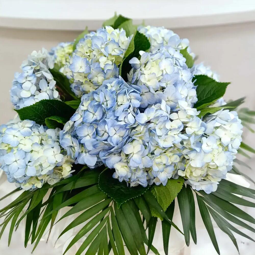 El Ramo de Hortensias Azules es una celebración de la elegancia natural y el equilibrio cromático. Con sus voluminosas y exuberantes flores en tonos azul pastel con toques cremosos, este ramo se convierte en una obra de arte floral ideal para ocasiones especiales o para aportar serenidad y frescura a cualquier espacio. Las hortensias, símbolo de gratitud y armonía, aportan un estilo sofisticado y romántico difícil de igualar. Recomendaciones de cuidado: Para alargar la vida de tus hortensias, colócalas en un jarrón limpio con agua fresca y cambia el agua cada dos días. Corta los tallos en diagonal cada vez que renueves el agua y mantenlas alejadas del sol directo, corrientes de aire y fuentes de calor. Si las flores se marchitan un poco, puedes sumergir completamente los tallos (o incluso las cabezas) en agua fría durante unas horas para rehidratarlas.