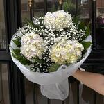 hortensia - 3 ud. Gypsophila - 3 ud. verde - 1 ud.