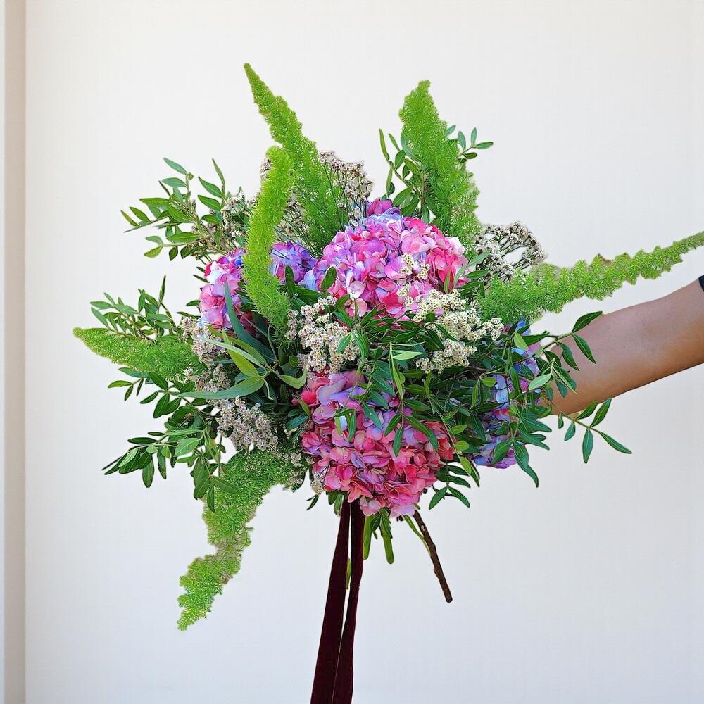 Ramo de Hortensias de Colores Vivos con Limonium y Lentisco – Arreglo Floral De Autor