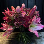 Ramo de liliums y crisantemos rosadas