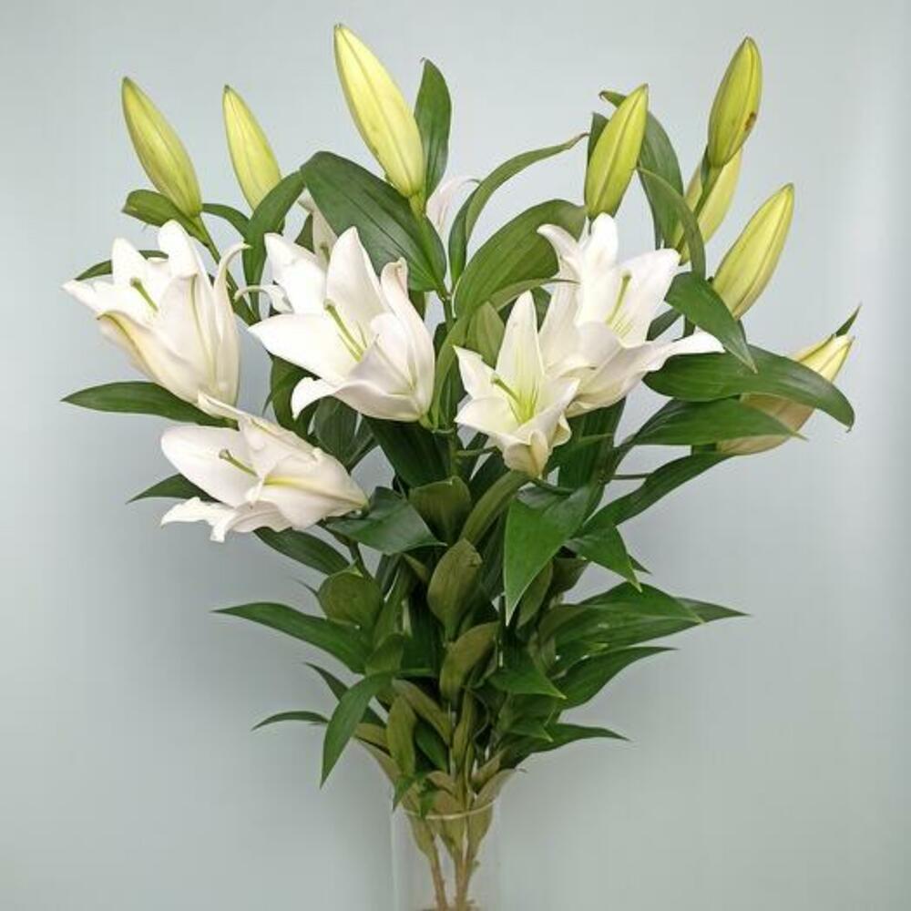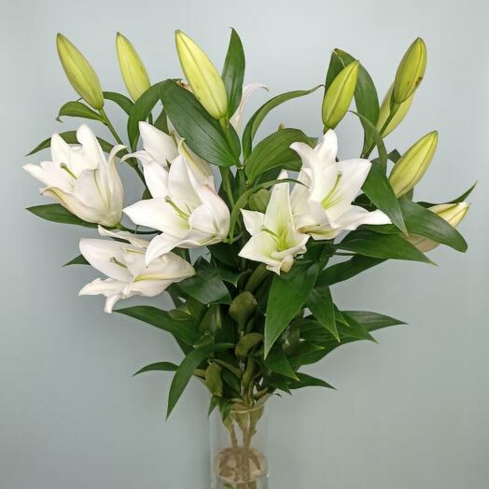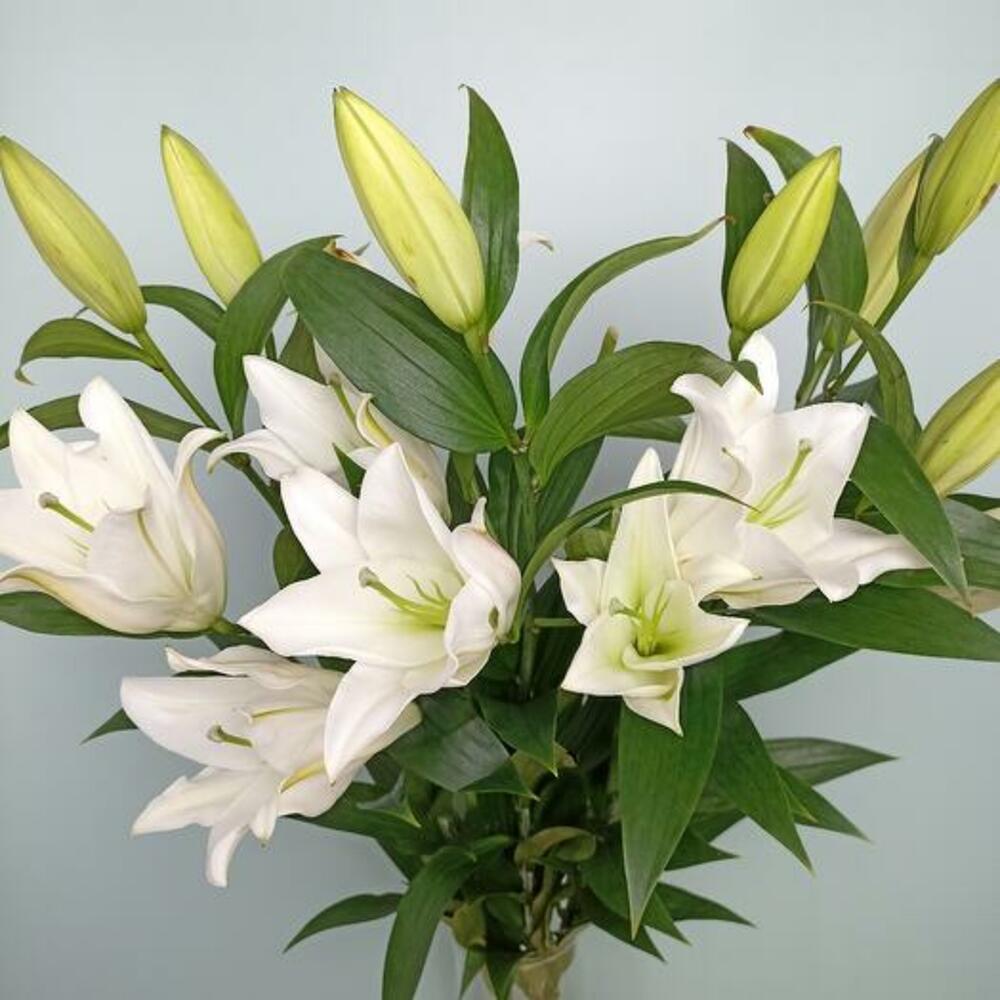 Un arreglo floral compuesto exclusivamente por lirios blancos frescos que emanan elegancia y serenidad. Este ramo minimalista celebra la belleza natural de los lirios, destacando sus pétalos impecables y su fragancia delicada. Perfecto para ocasiones especiales o para regalar un toque de sofisticación y pureza a cualquier ambiente. La frescura y los tonos verdes de su follaje complementan a la perfección el blanco inmaculado de las flores. Para prolongar la frescura de los lirios, corta los tallos en ángulo antes de colocarlos en un jarrón limpio con agua fría. Cambia el agua regularmente para mantenerla limpia y asegúrate de evitar la exposición directa al sol, corrientes de aire o fuentes de calor. Este cuidado garantizará que los lirios mantengan su esplendor por más tiempo, permitiéndote disfrutar de su belleza y fragancia.