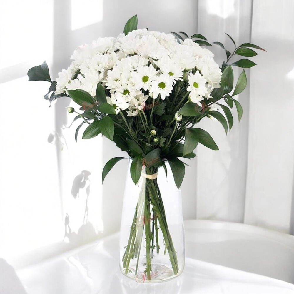 Este impresionante ramo de lirios blancos es la definición de pureza, elegancia y sofisticación. Con flores grandes y fragantes, acompañadas de un follaje verde vibrante, crea un contraste armonioso que llena cualquier espacio de serenidad y frescura. Ideal para bodas, aniversarios o como un gesto de aprecio y admiración, su diseño minimalista resalta la belleza natural de cada lirio. Presentado en un jarrón de cristal, es un regalo perfecto para expresar sentimientos sinceros y profundos. ¡Regala este arreglo y transmite un mensaje de paz y amor!