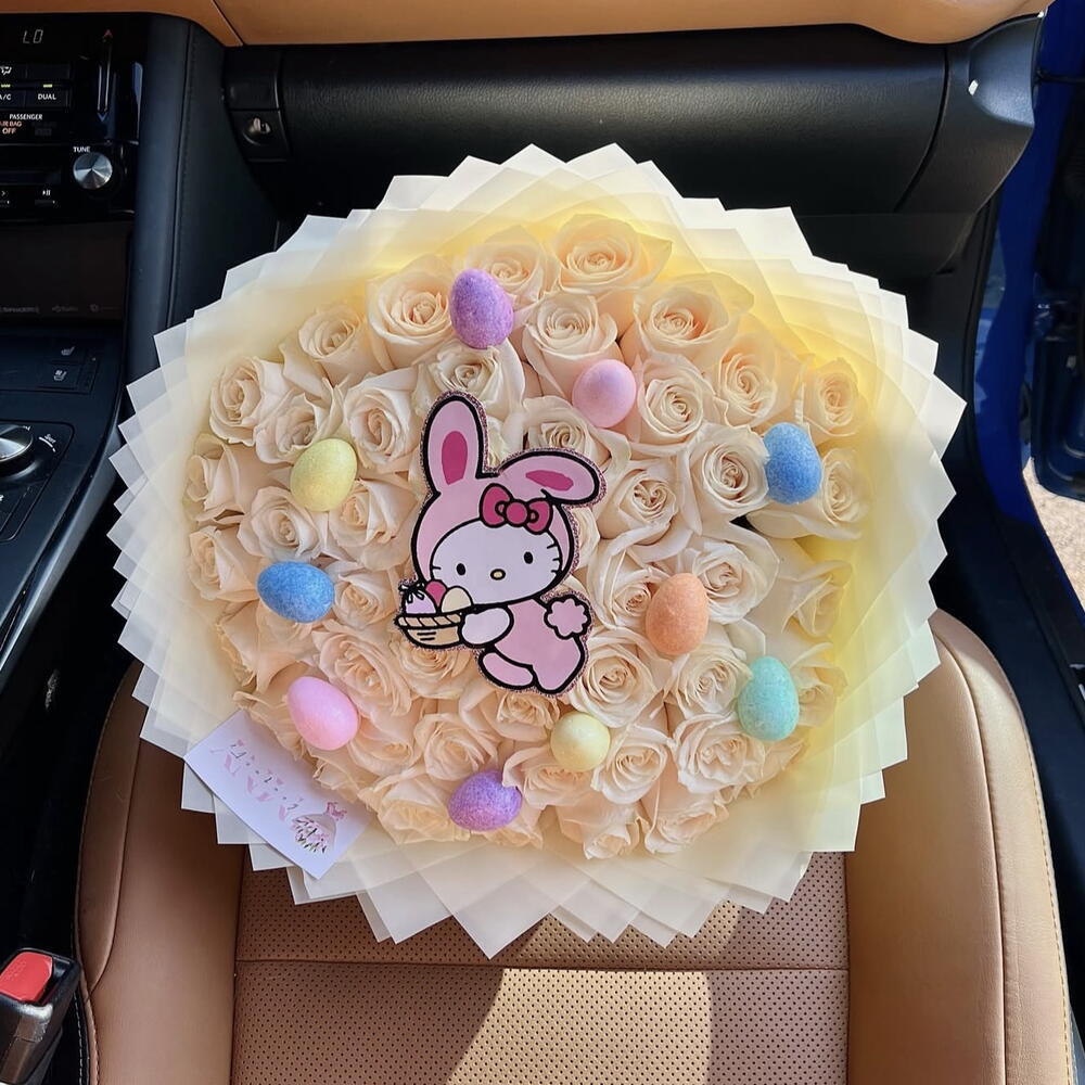 Ramo de Pascua con 50 rosas blancas ecuatorianas y decoracion de huevos – Bouquet exclusivo