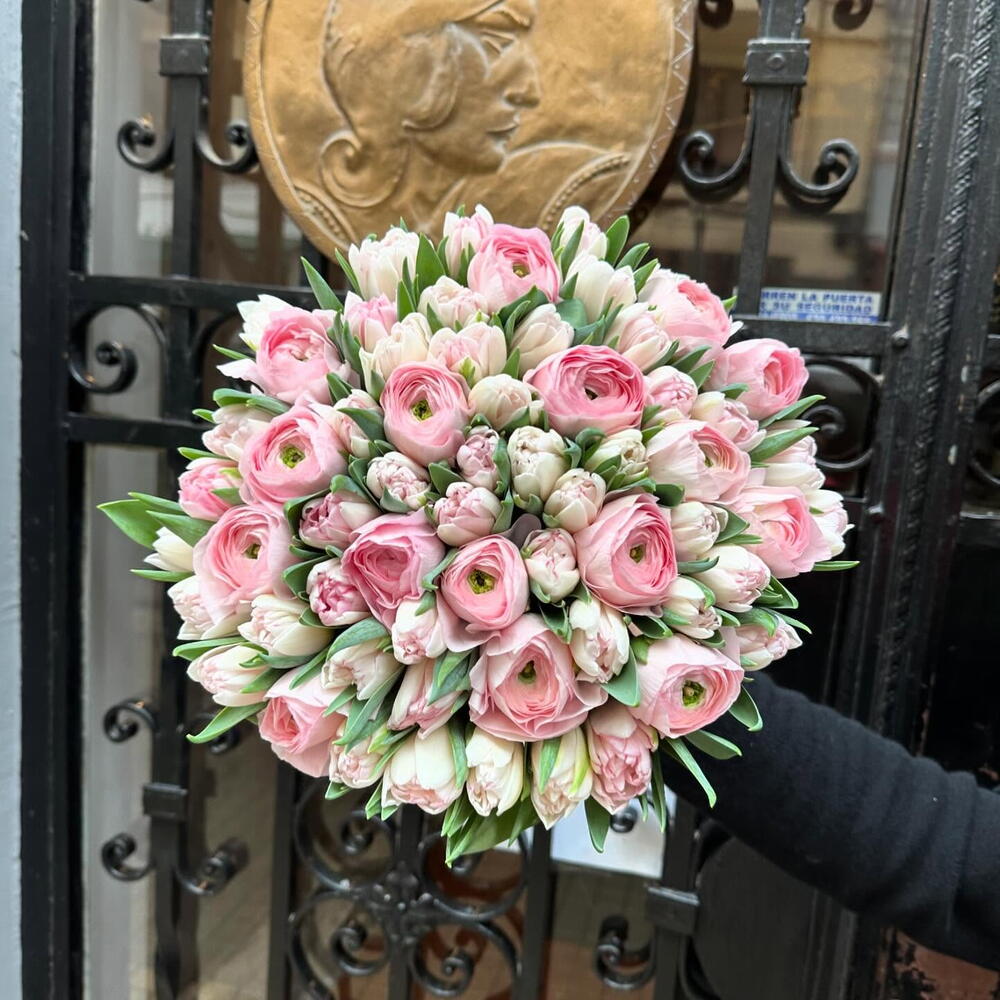 ranúnculos rosas - 25 ud. tulipanes dobles rosa claro - 35 ud.
