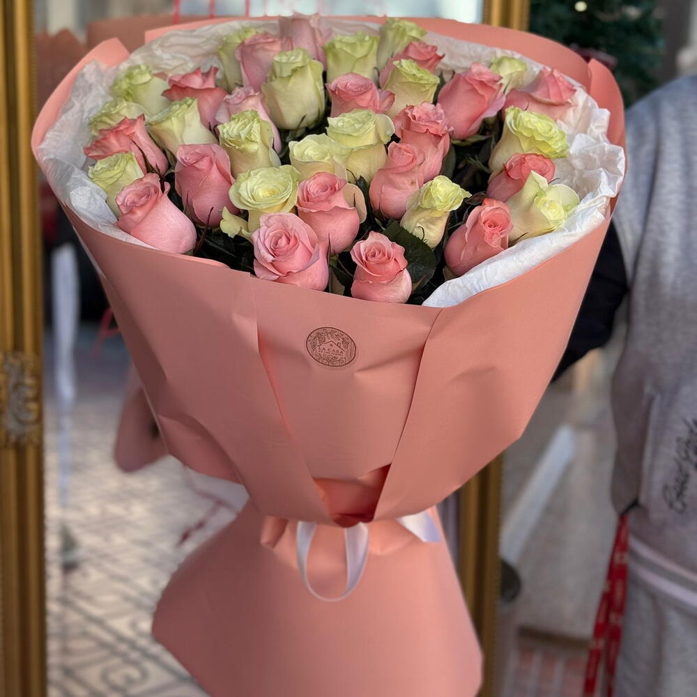 Ramo de Rosas Pastel Dulce Amanecer – Bouquet Elegante de 35 Flores