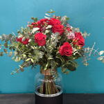 eucalipto - 5 ud. paniculata - 3 ud. rosas rojas - 9 ud. verdes decorativos - 3 ud.