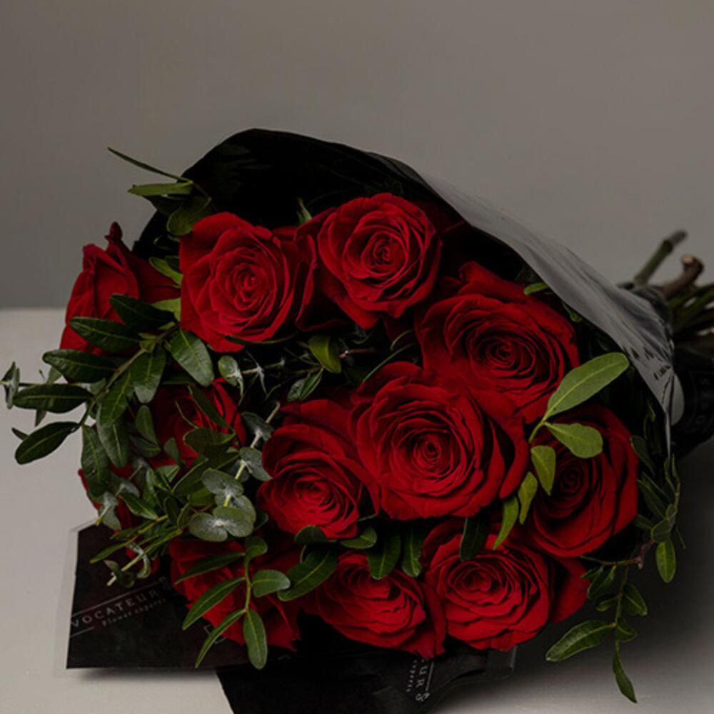 Ramo de rosas rojas con verde