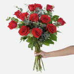 verdes variados - 10 ud. cinta roja - 1 ud. rosas rojas 12 - 12 ud.