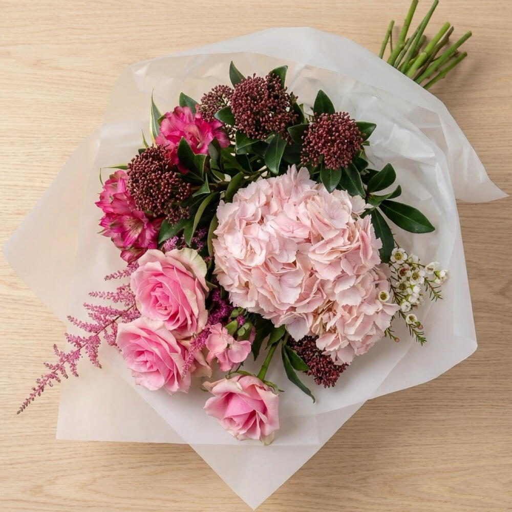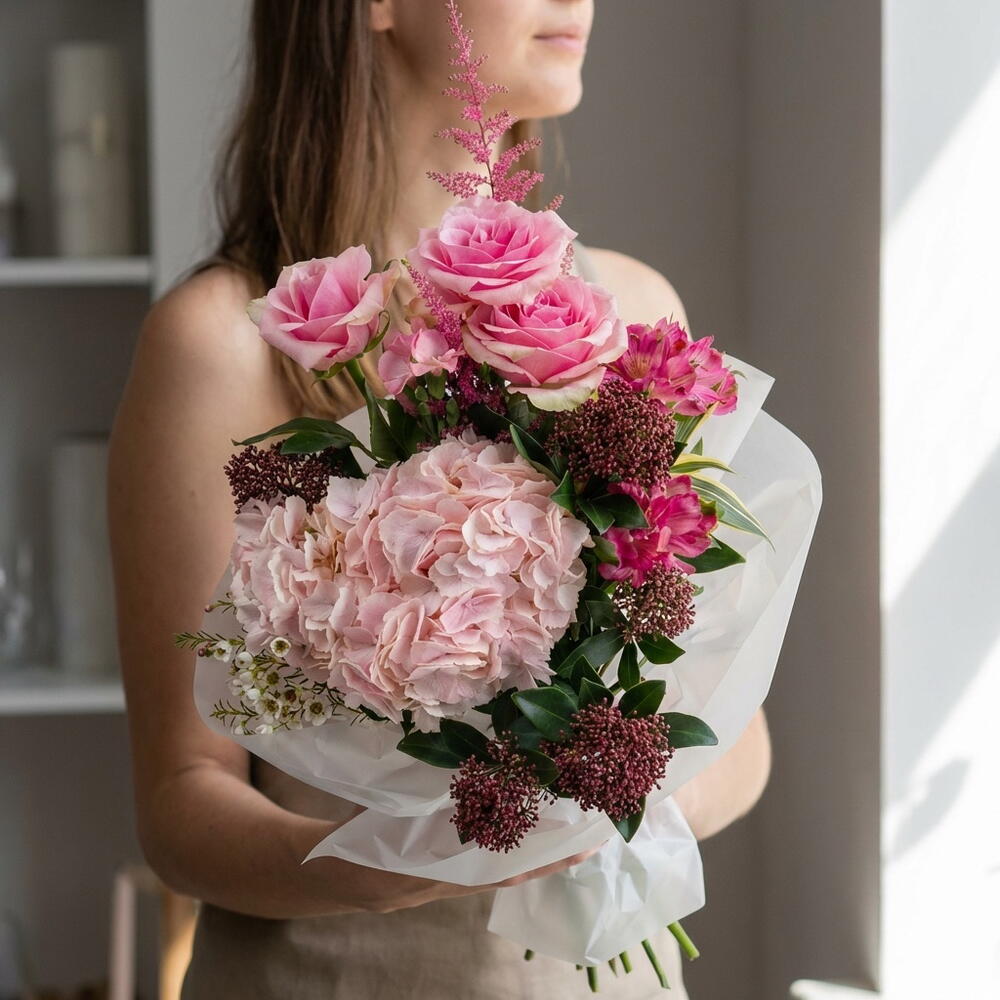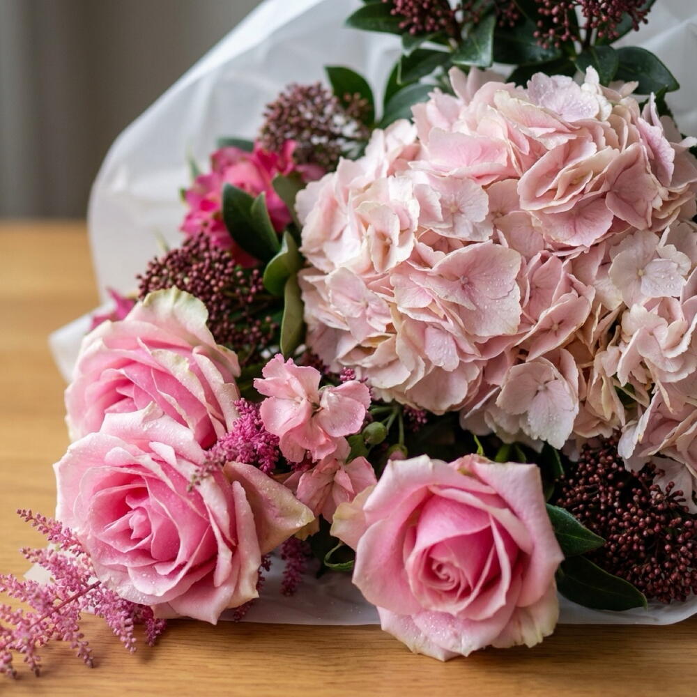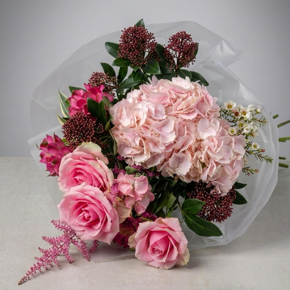 Ramo de Rosas y Hortensia Rosado ARAIK GALSTYAN
