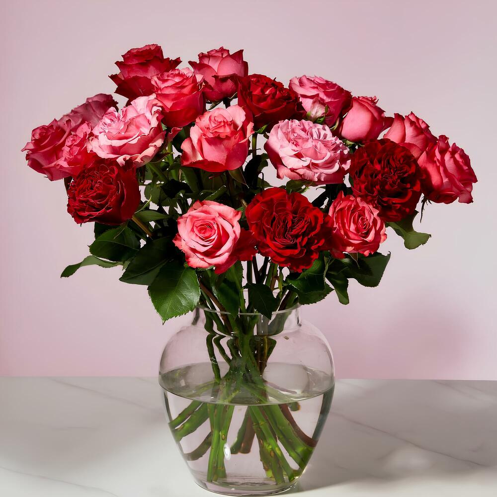 Ramo de San Valentin de rosas mixtas rosadas y rojas