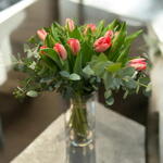 tulipanes - 10 ud. verdes variados - 7 ud. jarrón de vidrio - 1 ud.
