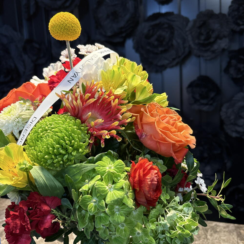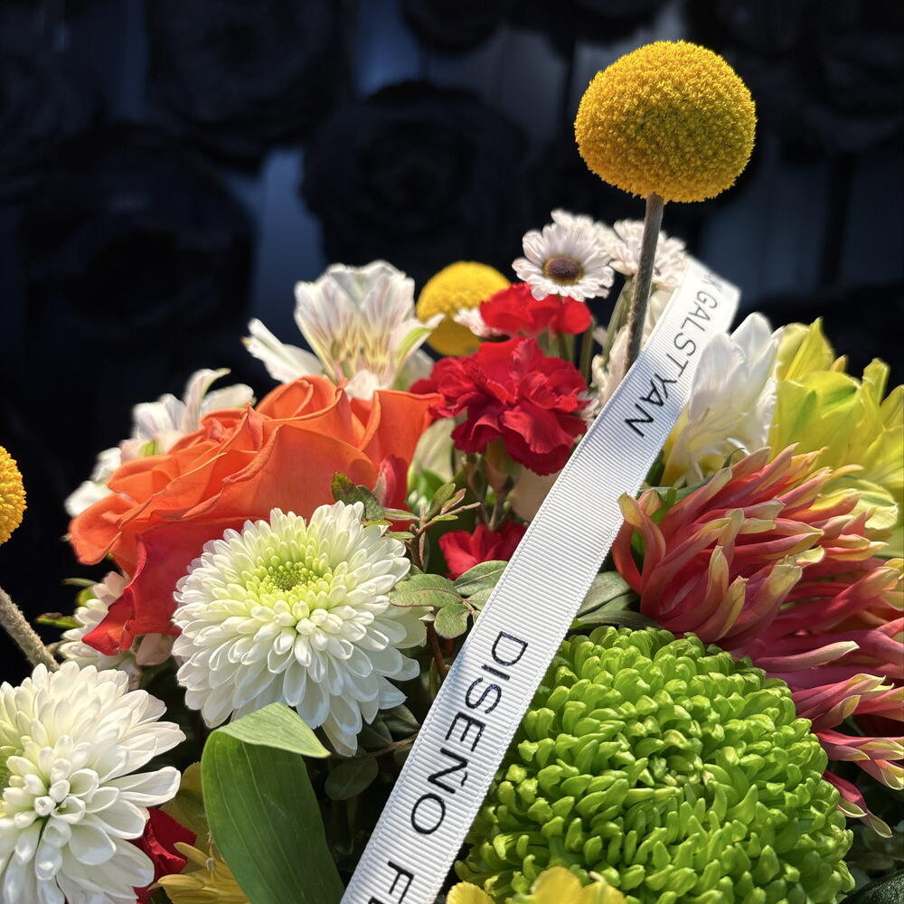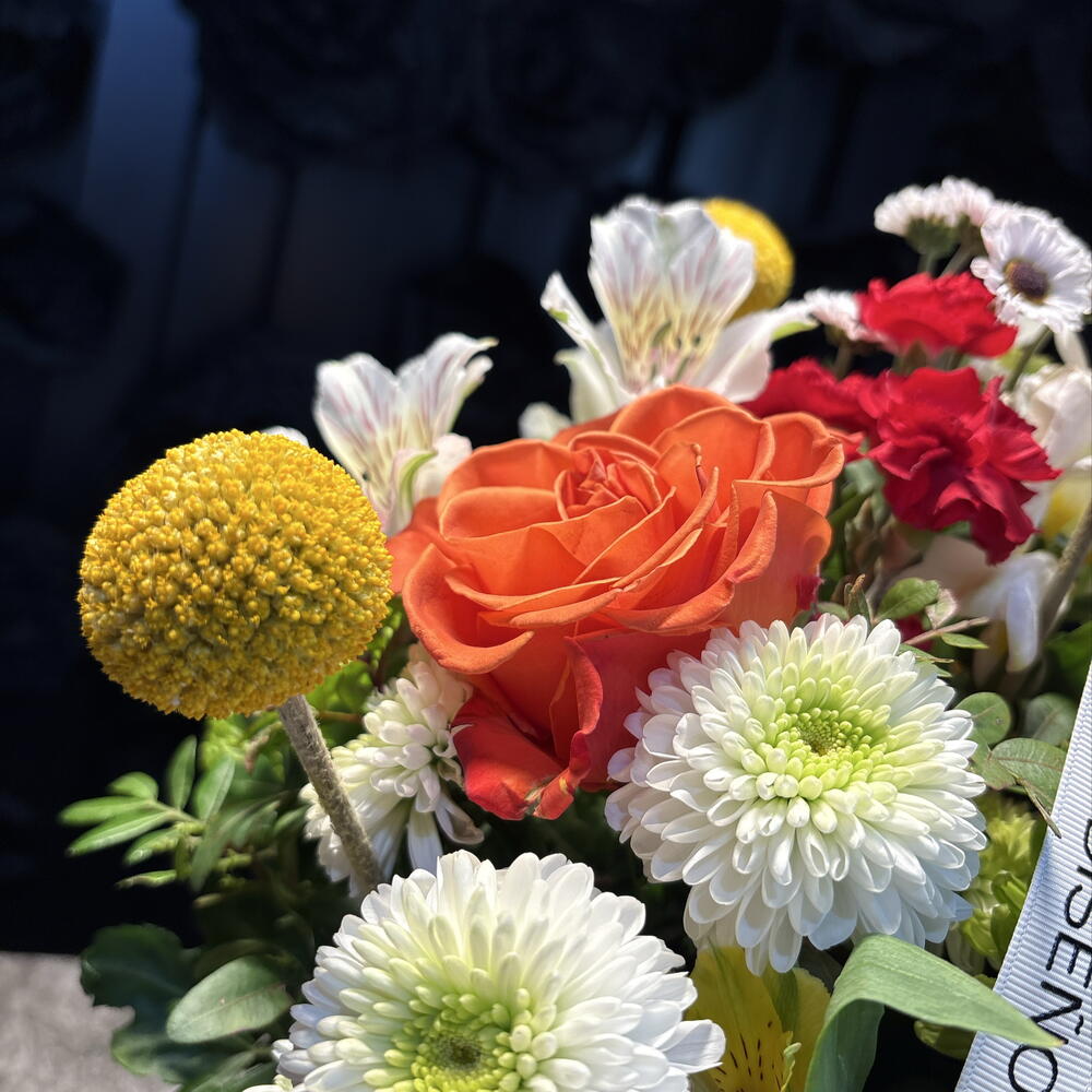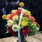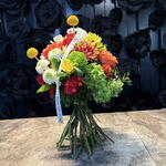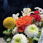 Alstroemeria - 5 ud. Gerbera - 1 ud. Pistachio - 1 ud. ranunculus - 1 ud. craspedia - 3 ud. rosa - 3 ud. clavel - 1 ud. crisantemos - 7 ud.