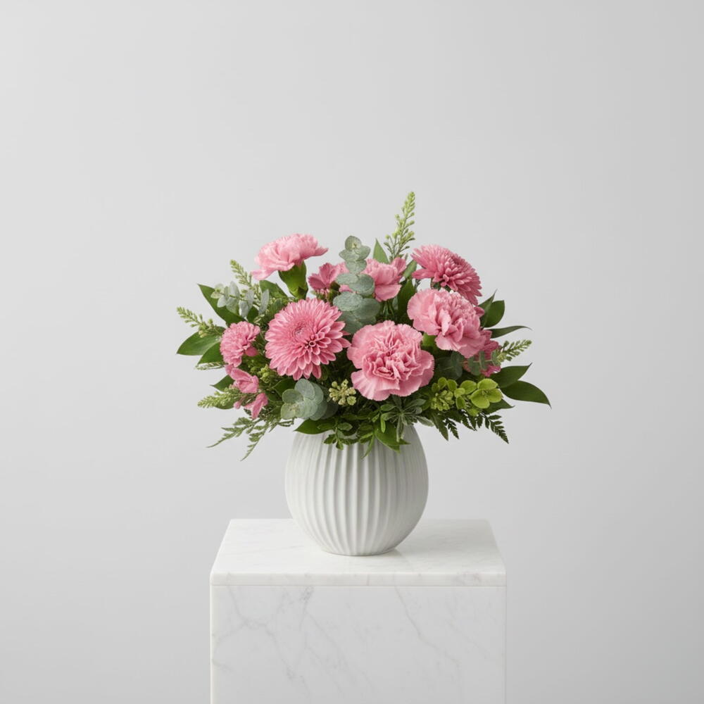 Este encantador producto de la categoría De autor consiste en un delicado arreglo floral hecho con flores rosas. Este alegre conjunto floral encarna la belleza y la frescura de la naturaleza, agregando un toque de color y vivacidad a cualquier espacio. Ideal para regalo o para embellecer tu hogar.