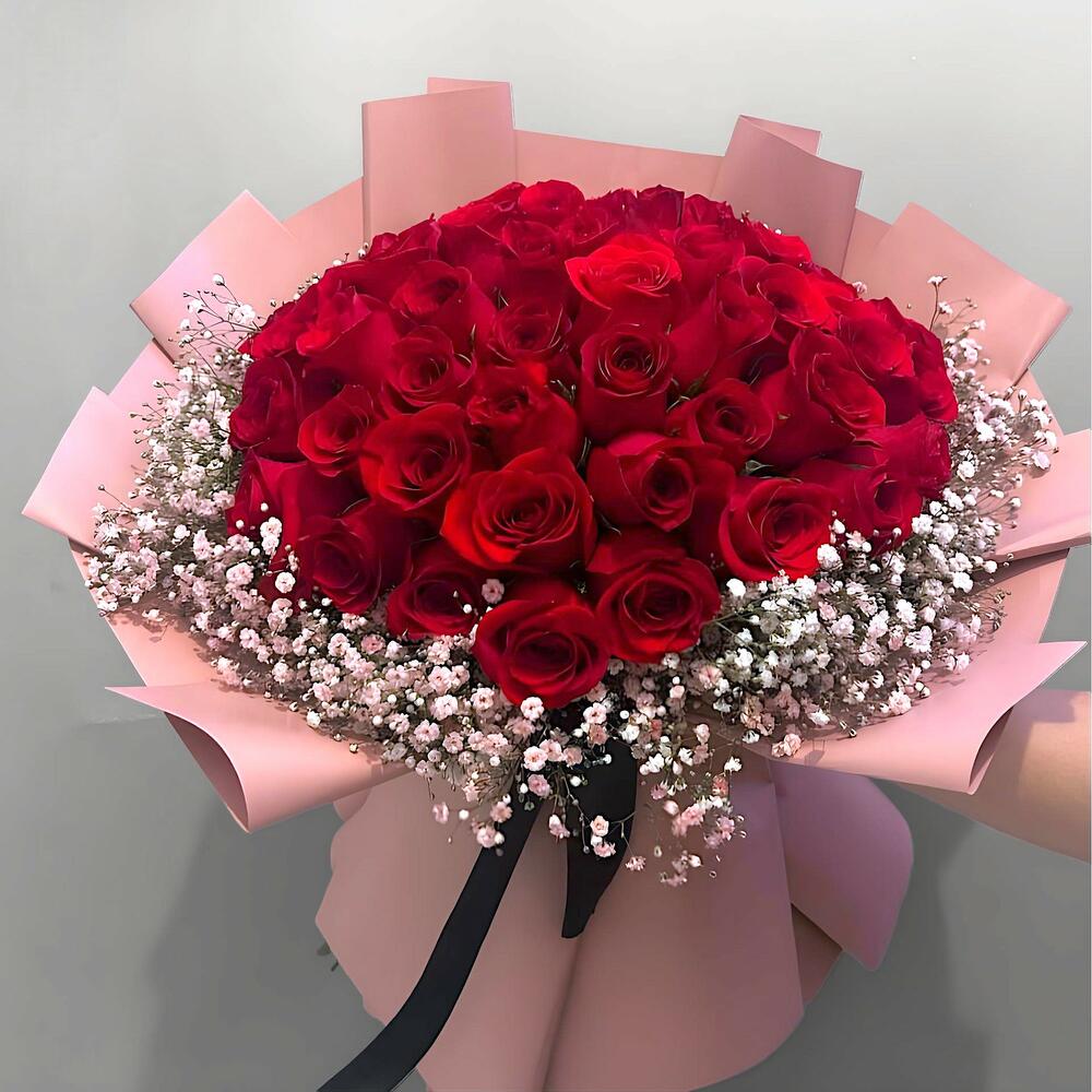 paniculata - 1 ud. rosas rojas - 35 ud. lazo de cinta - 1 ud. papel coreano - 1 ud.