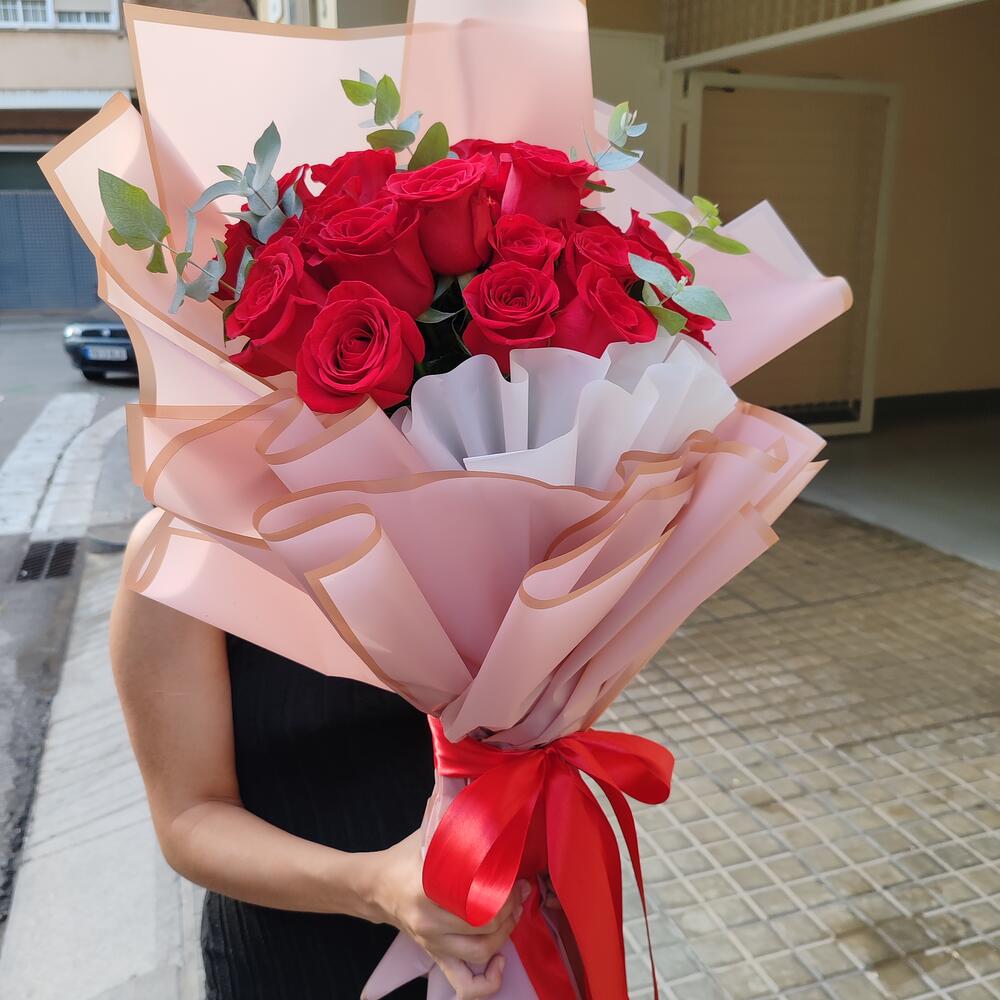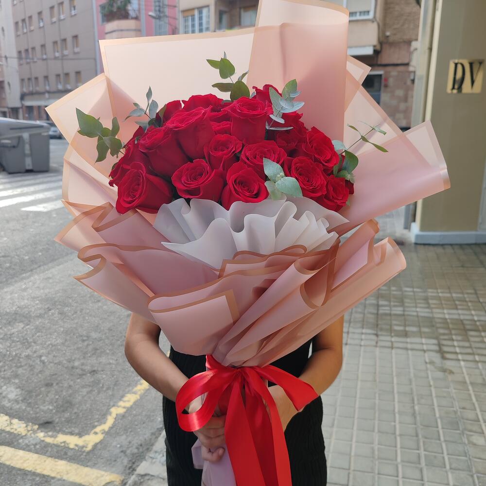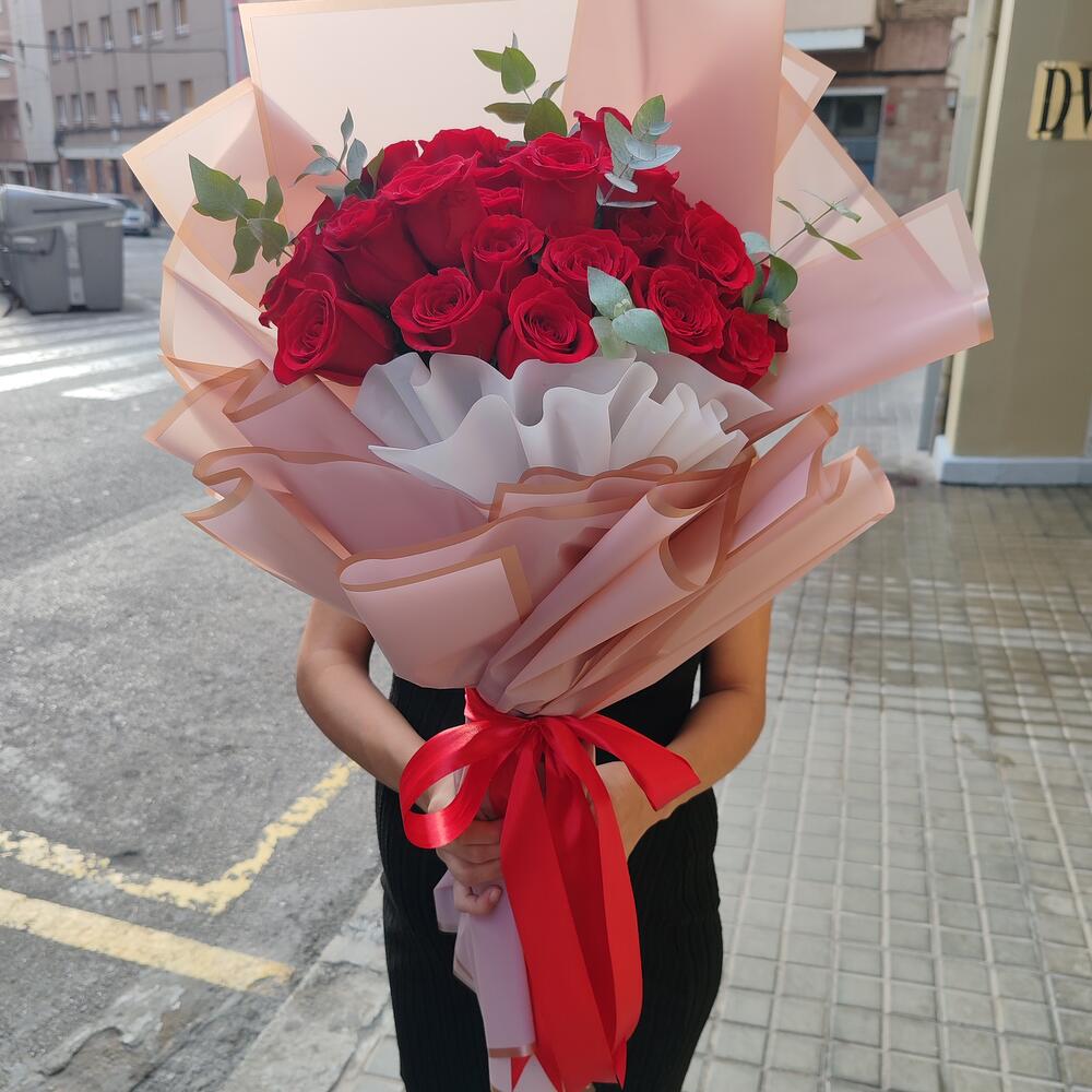 Hermoso y elegante ramo de rosas rojas, un total d 25, que harán que esa persona tan especial, te quiera y valore más que nunca