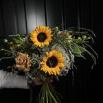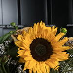 Limonium - 2 ud. Alstroemeria - 4 ud. ranunculus - 3 ud. girasol - 3 ud. ami - 3 ud. rosa retro - 4 ud.