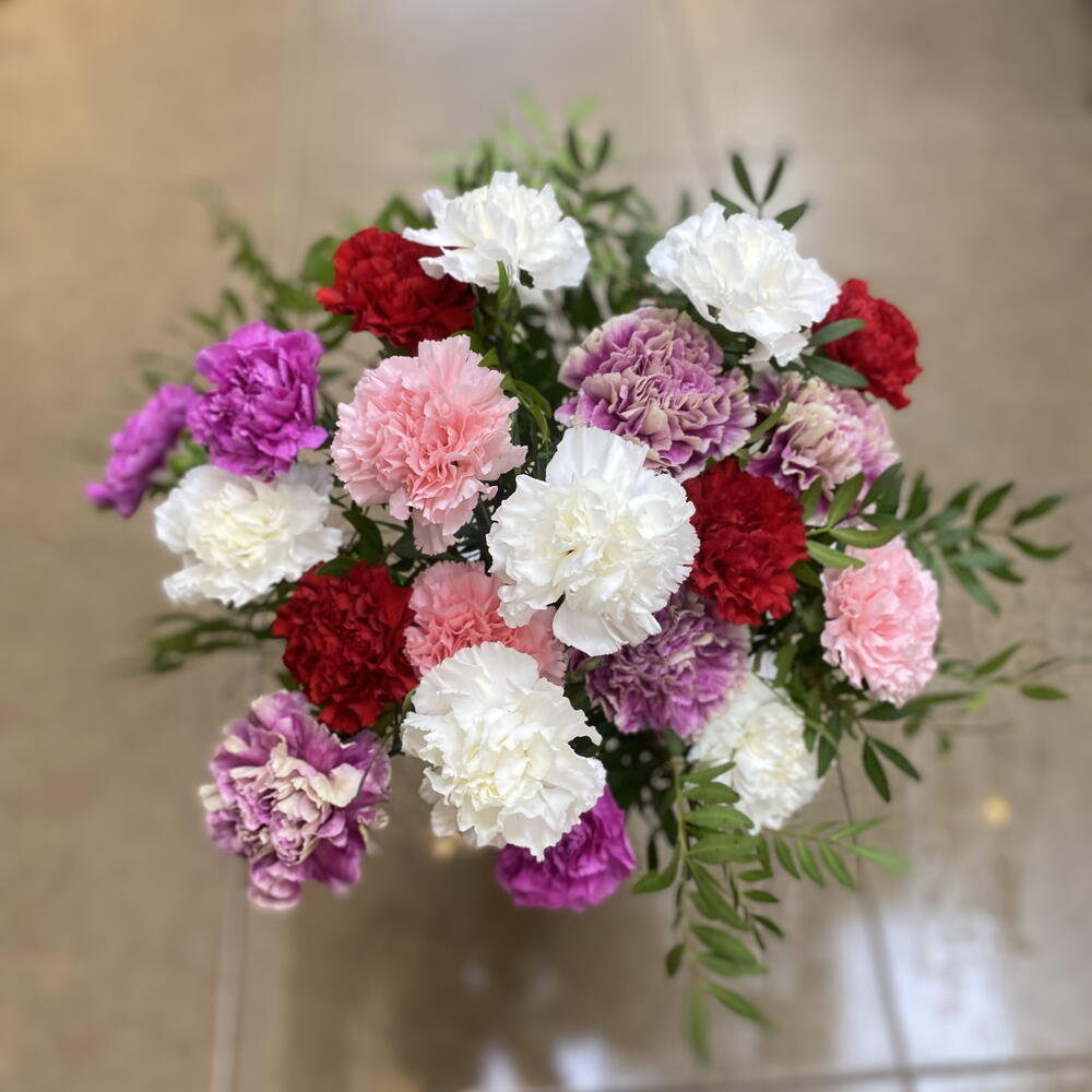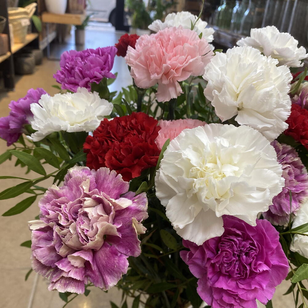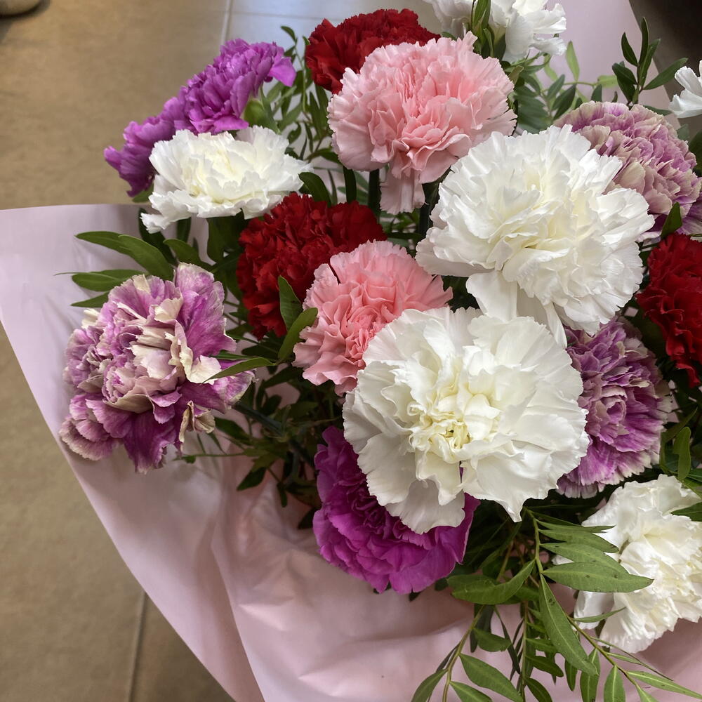 follaje - 4 ud. papel envoltorio decorativo - 1 ud. claveles variados - 18 ud.