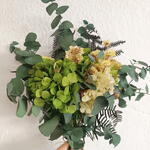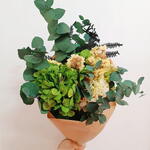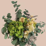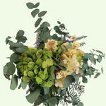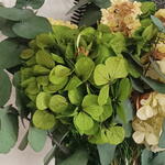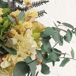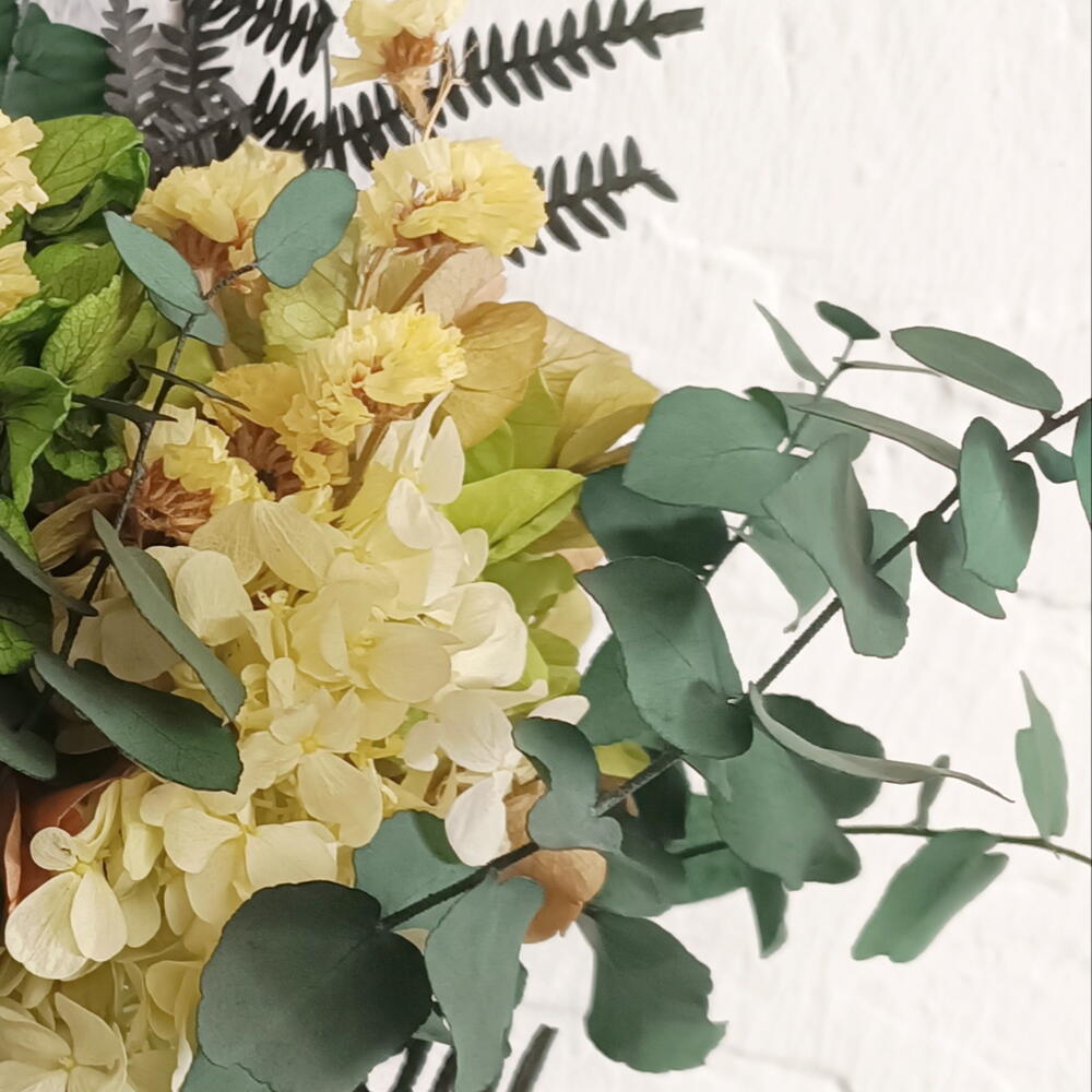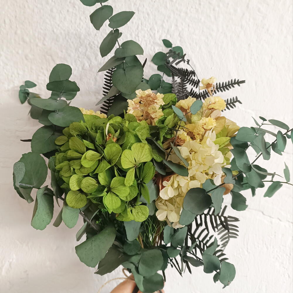 eucalipto preservado - 7 ud. siempreviva amarilla - 20 gr hortensia preservada en dos tonos de verde - 4 ud.