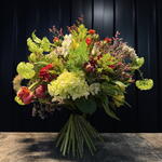 Alstroemeria - 11 ud. hortensia - 3 ud. ammi majus - 4 ud. roses - 10 ud. marful - 1 ud. limones - 7 ud.