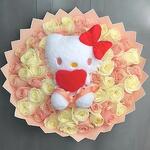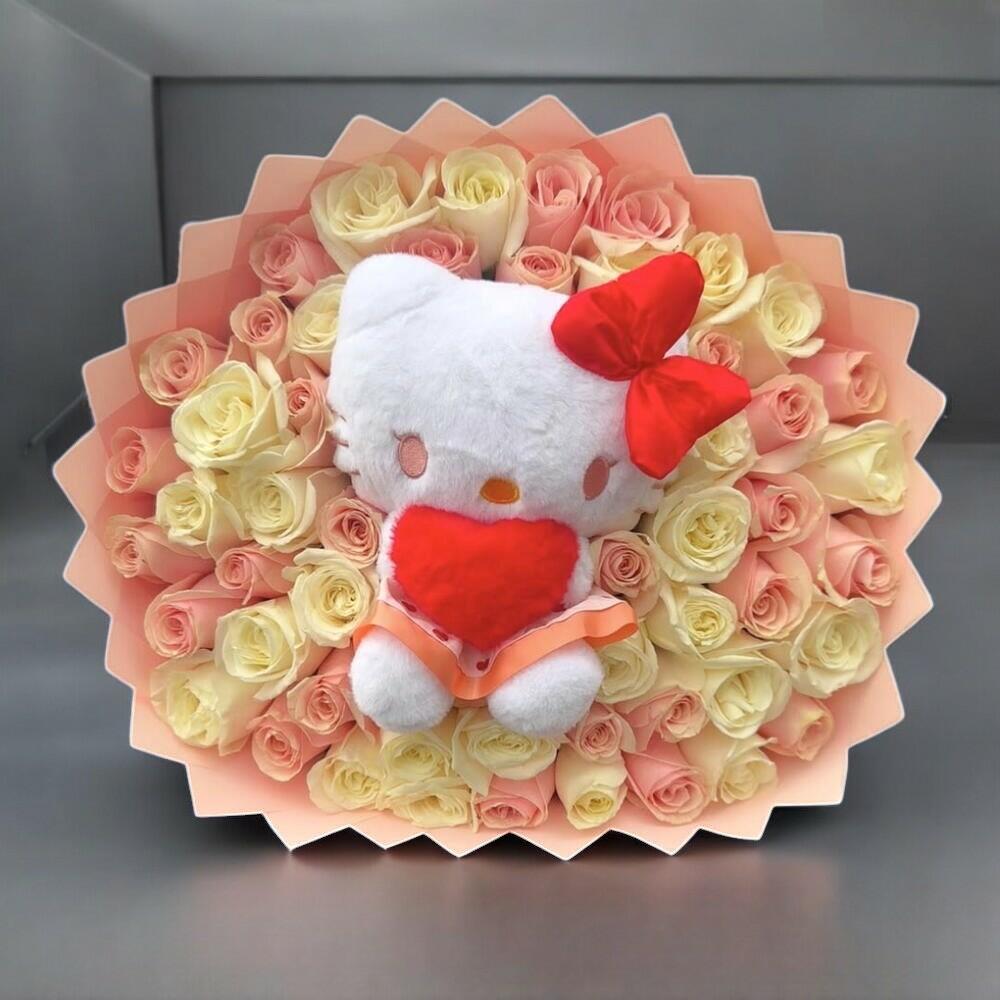 Ramo Clasico Hello Kitty con Rosas Rosadas y Blancas