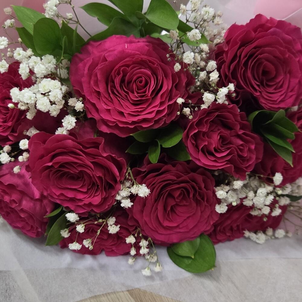Sorprende a la persona que tanto quieres con nuestro ramo de rosas Hotspot. Una delicada combinación de 10 rosas fucsia ecuatorianas, hojas de ruscus, paniculata blanca, envuelto con papel coreano y finalizado con un elegante lazo decorativo. Una elección perfecta para transmitir sentimientos profundos y sinceros a tus seres queridos.