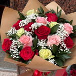Ruscus - 1 ud. Gypsophila - 1 ud. rosas mix - 15 ud.