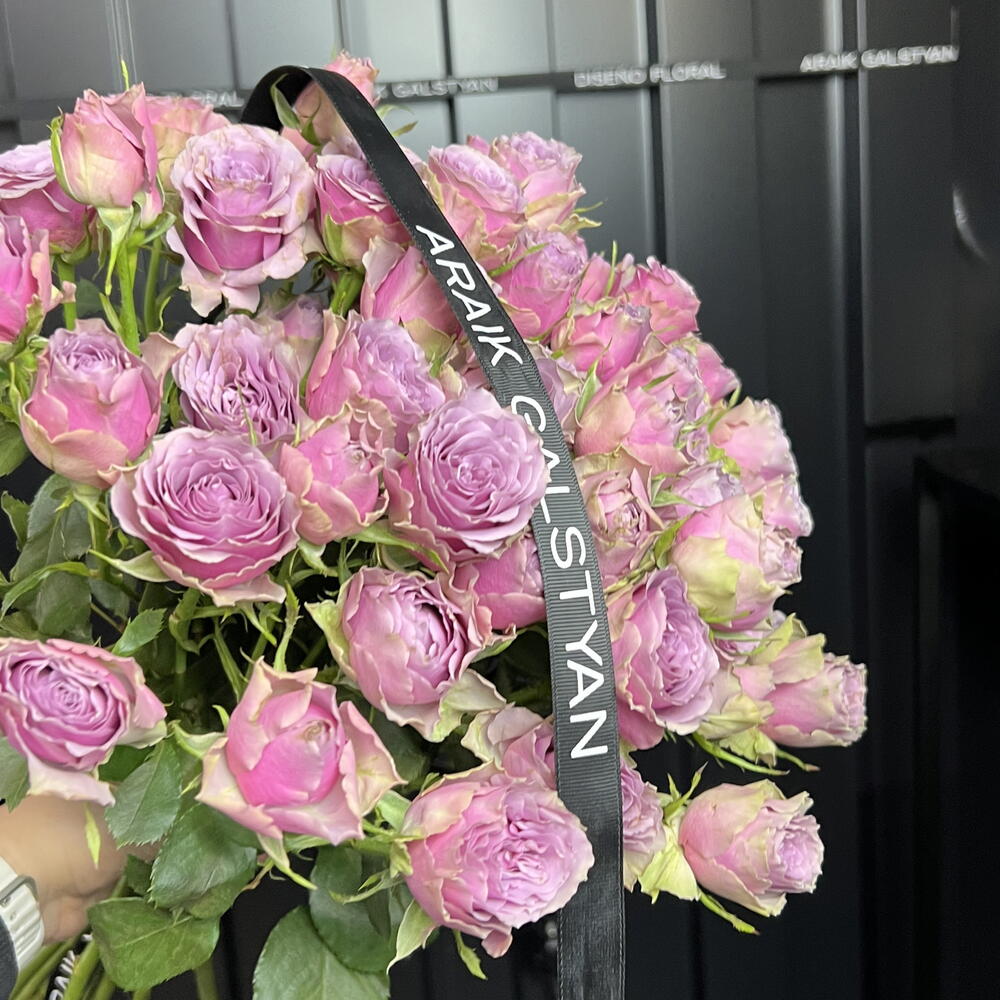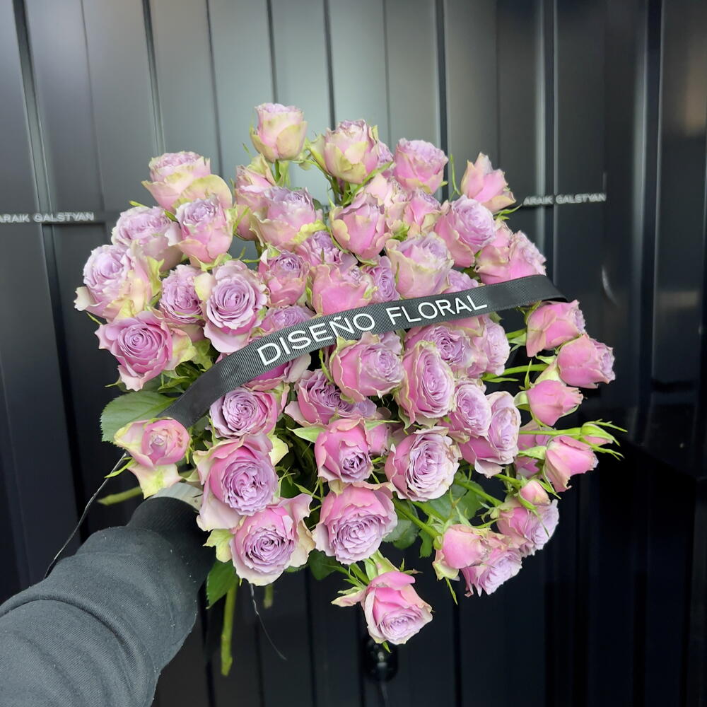 Monobouquet “Lila Vintage” Elegante monobouquet de rosas lila con una forma natural y ligeramente desenfadada. La estructura ramificada y los tallos de distintas alturas crean un efecto fresco, como si las flores acabaran de ser recogidas del jardín. El delicado tono lavanda aporta un aire sofisticado y vintage. Las rosas lila simbolizan encanto, admiración y una romántica sutileza, convirtiendo este ramo en un detalle especial y con significado. **Ideal para:** — ocasiones románticas — regalos elegantes sin motivo específico — decoración con estilo **Características:** — solo rosas lila (monobouquet) — forma ligera y aireada — estilo retro / vintage