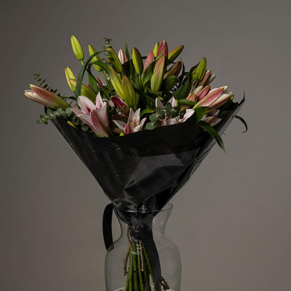 eucalipto cinerea - 5 ud. lilium rosa - 10 ud.