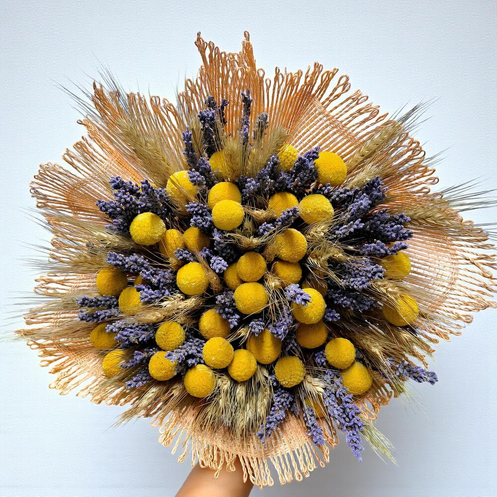 paquete espigas - 1 ud. paquete lavanda - 1 ud. paquete craspedia - 1 ud.