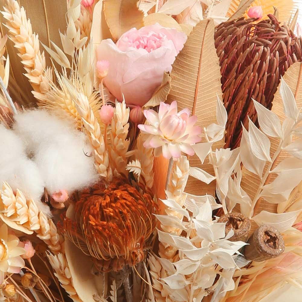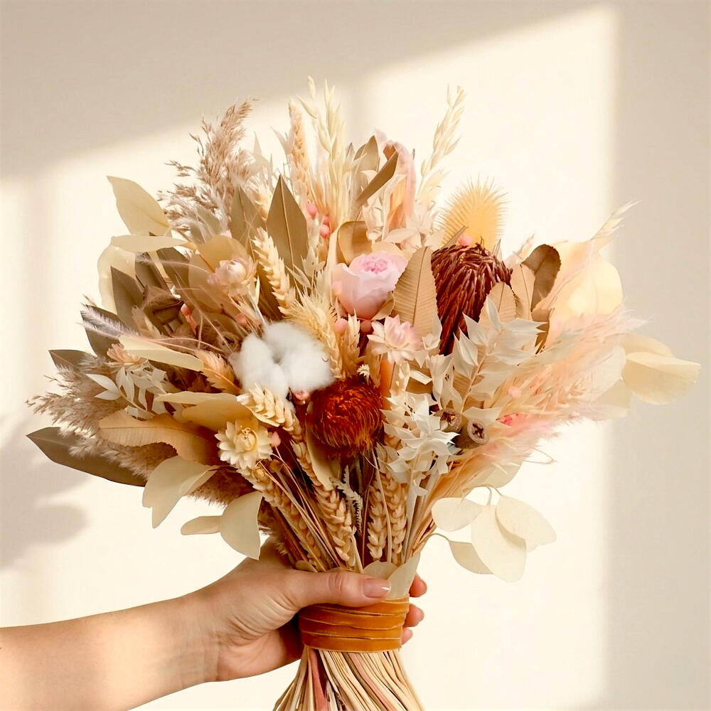Este elegante ramo de flores secas es perfecto para quienes buscan un toque de serenidad y naturalidad en su hogar. Con tonos cálidos y terrosos, evoca la calma y la elegancia del atardecer en el desierto. Ideal como decoración duradera o como regalo especial, este ramo no requiere mantenimiento y se mantendrá hermoso durante mucho tiempo. Añádelo a cualquier espacio y llena el ambiente de un estilo rústico y sofisticado.