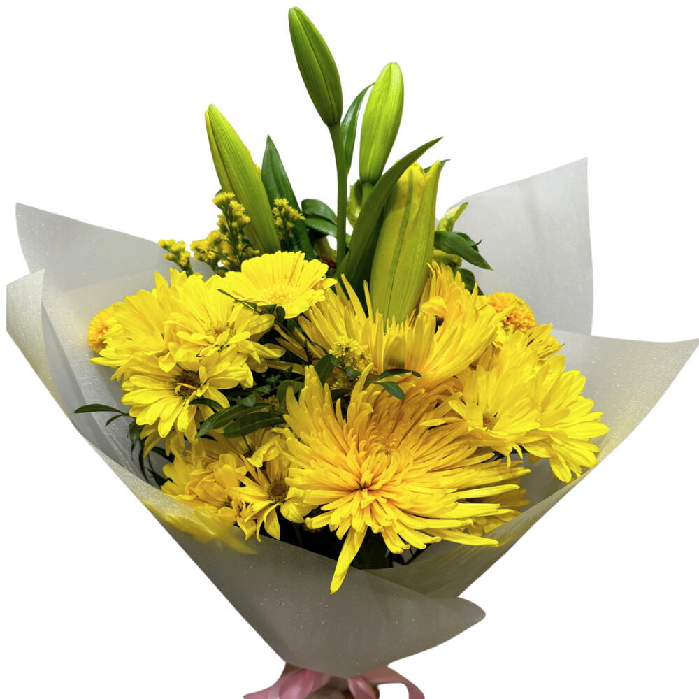 Ramo de flores amarillas variadas. Sorprende este 21 de marzo. Imagen referencial algunas flores mostradas pueden variar por otras según stock disponible, se respetará los tonos amarillos.
