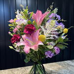 Un hermoso ramo de flores frescas cuidadosamente seleccionado por nuestros floristas. Perfecto para sorprender, celebrar un momento especial o simplemente alegrar el día de alguien con un detalle lleno de color y fragancia.