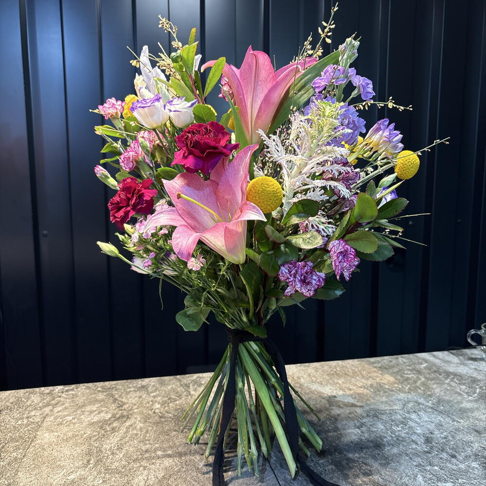 Un hermoso ramo de flores frescas cuidadosamente seleccionado por nuestros floristas. Perfecto para sorprender, celebrar un momento especial o simplemente alegrar el día de alguien con un detalle lleno de color y fragancia.