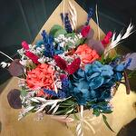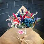 limonium rosa - 3 ud. hortensia azul - 2 ud. hortensia coral - 2 ud. avena rosa - 5 ud. lavanda azul - 6 ud.