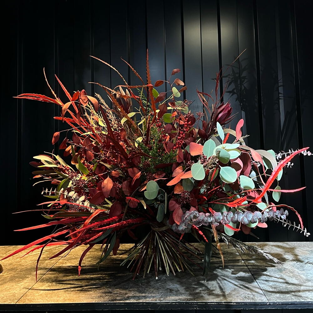 ilex red - 5 ud. leucodendron - 4 ud. eucalipto populus - 6 ud. eucalipto cinerea - 2 ud. panicum - 15 ud. eucalipto salvaje - 10 ud.