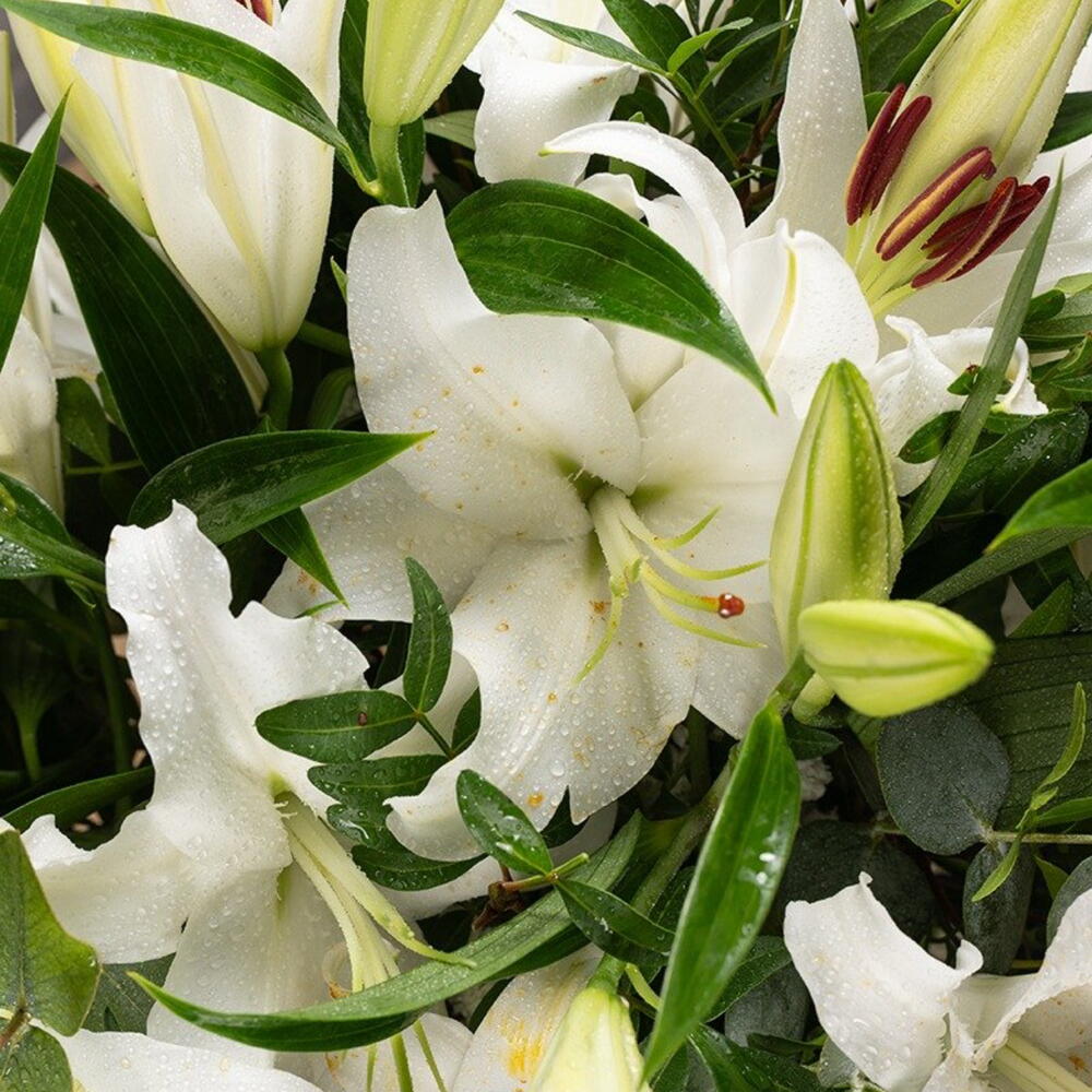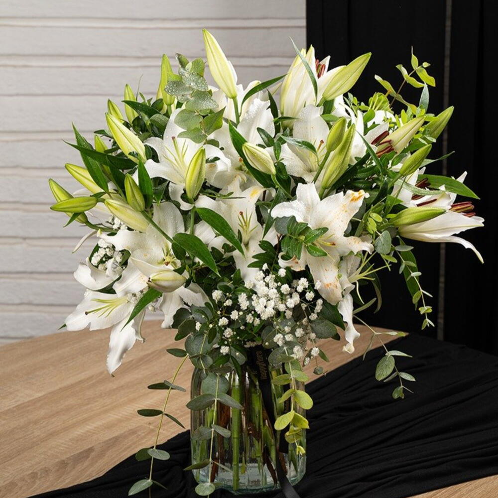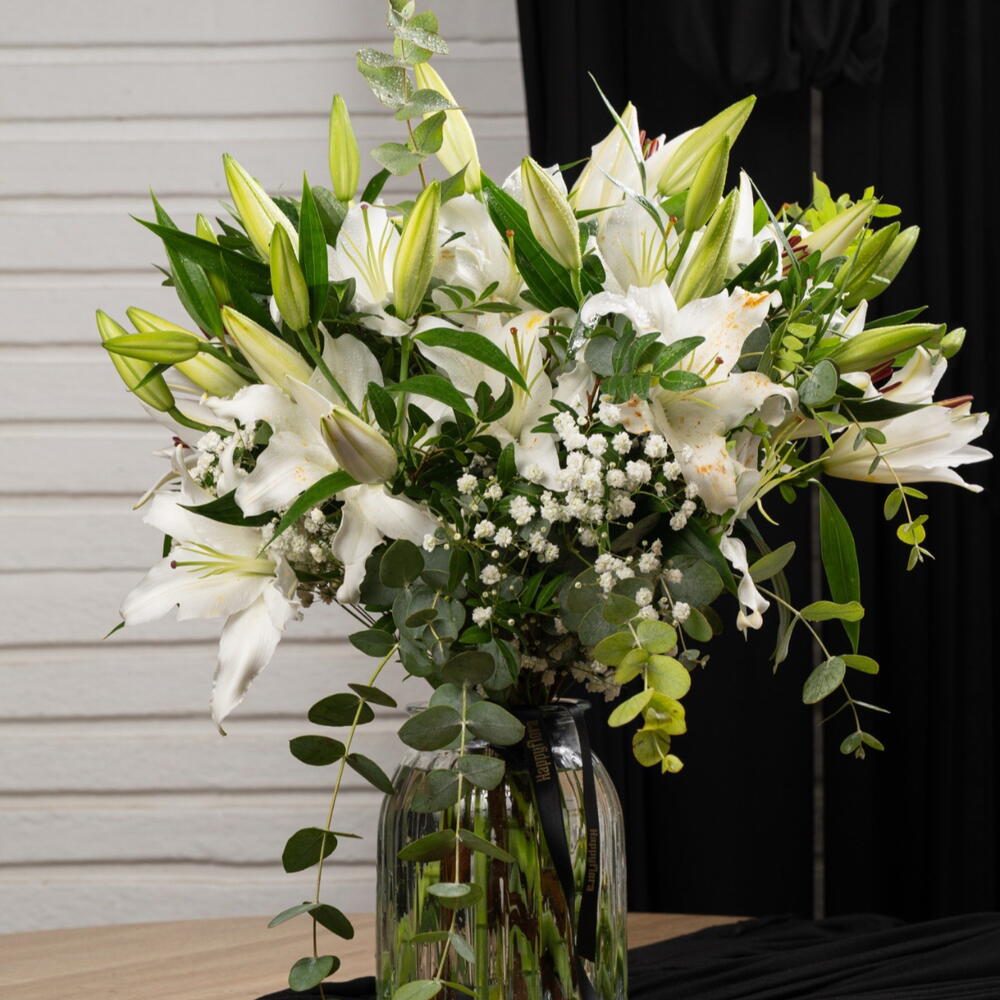 eucalipto - 5 ud. paniculata - 3 ud. verdes - 4 ud. lirios blancos - 7 ud.