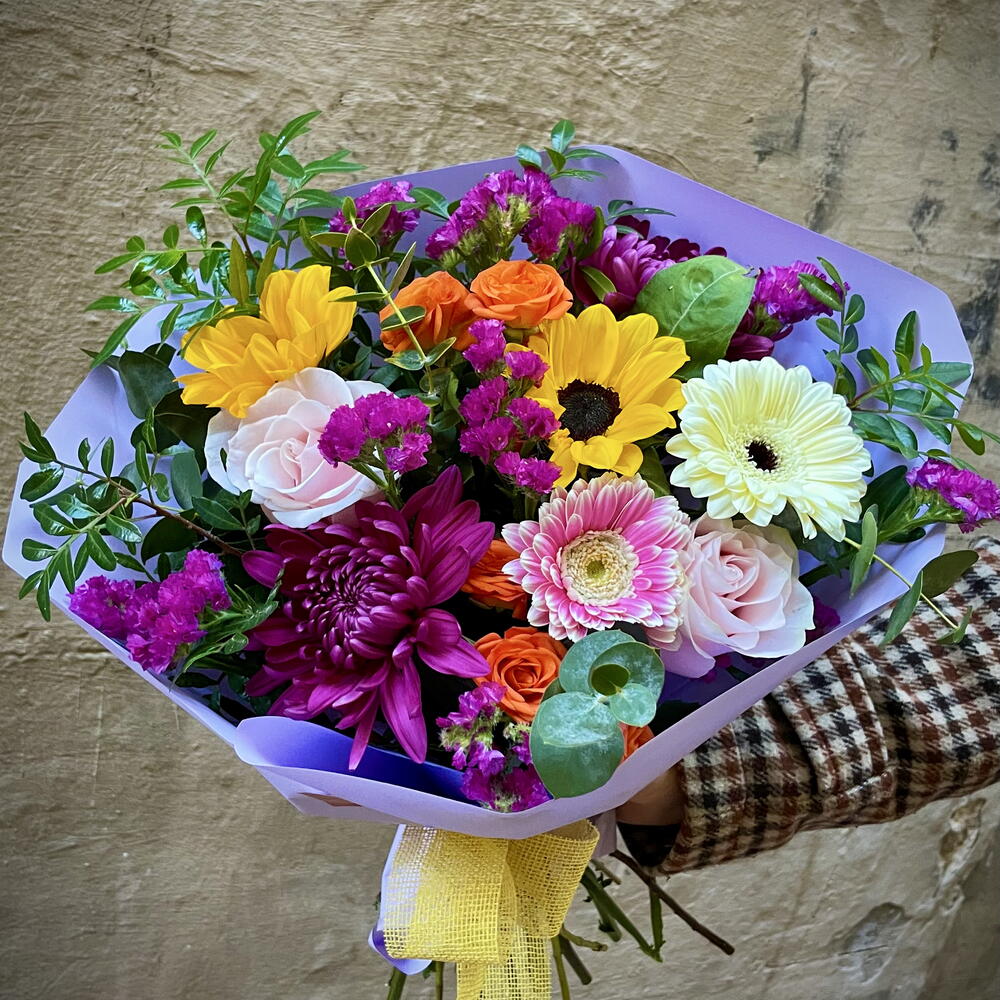 Ramo lleno de color que lo convierte en el detalle perfecto para transmitir energía, optimismo y cariño en cualquier ocasión: cumpleaños, agradecimiento o para sorprender.