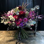 Nuestro Ramos clásicos consta de 10 hermosas Statice, 3 Brassica púrpuras, 2 Eucaliptos Cinerea, 2 Limonium Purple y 5 Crisantemos. Esta mezcla ecléctica de flores le da un toque único y colorido. Su presentación en varios tonos de púrpura y verde crea una sensación natural y fresca. Ideal para regalar en cualquier ocasión y puede agregar un toque de elegancia a cualquier habitación.