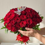 Este maravilloso ramo clásico está bellamente compuesto por 10 unidades de Ruscus, dándole un toque verde y fresco. Añadidos a este ramo están 50 rosas rojas de tallo largo, un símbolo tradicional de amor y romance, haciendo de este ramo la opción perfecta para expresar tus sentimientos más profundos. Se incluye un lazo decorativo para realzar aún más la belleza de este montaje. Para un toque final único y encantador, este ramo también incluye una delicada mariposa decorativa. Un regalo perfecto para cualquier ocasión especial.